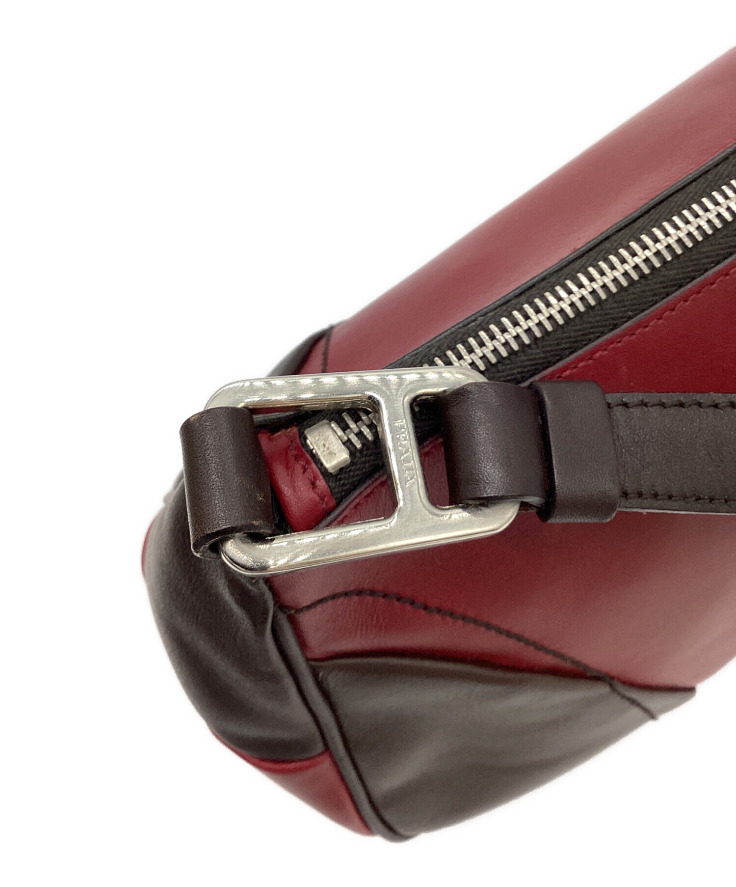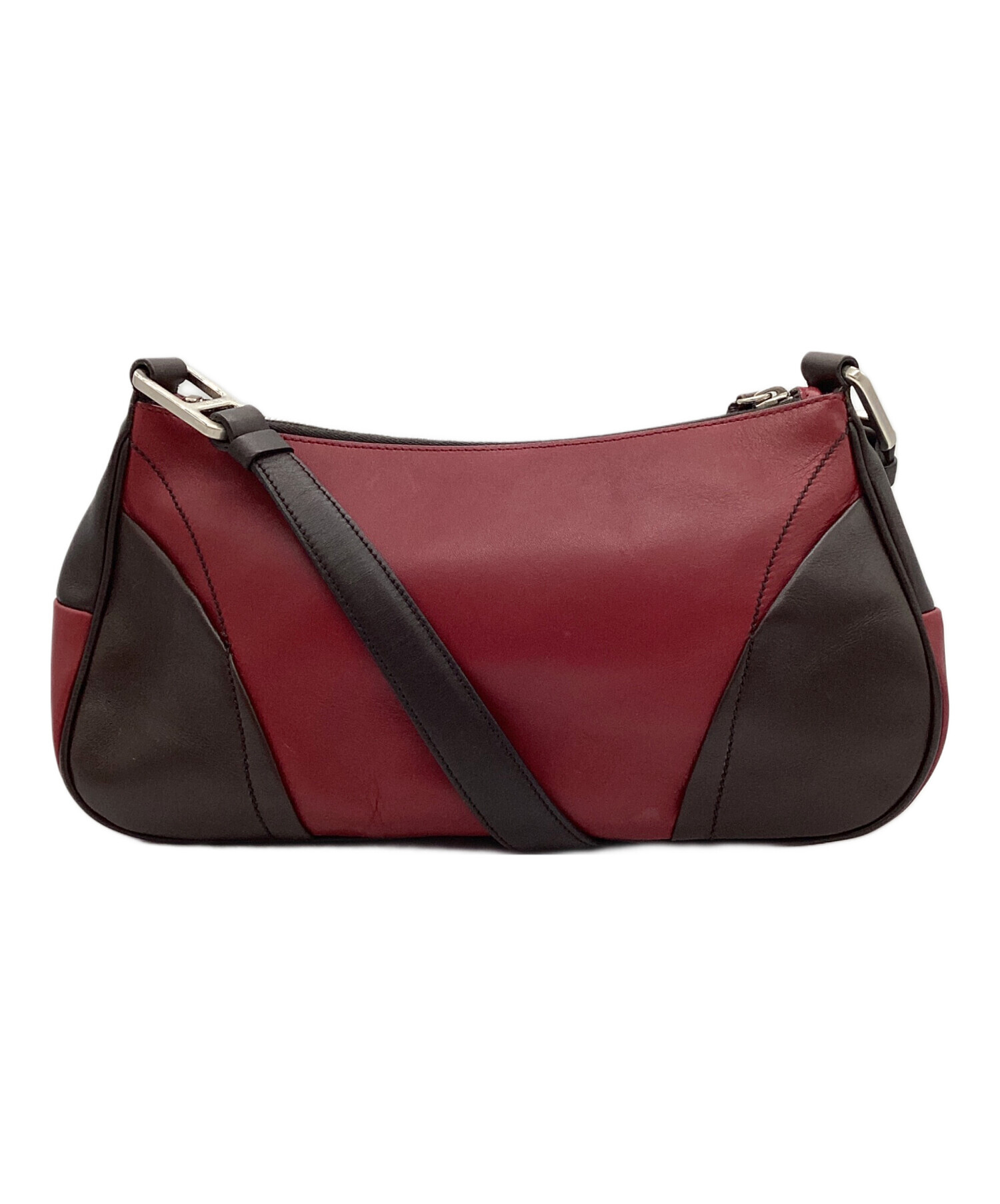 • PRADA(プラダ)PRADA (プラダ) ロゴ レザーワンショルダーバッグ レッド×ブラウンの古着・服飾アイテム 小ヨゴレ有