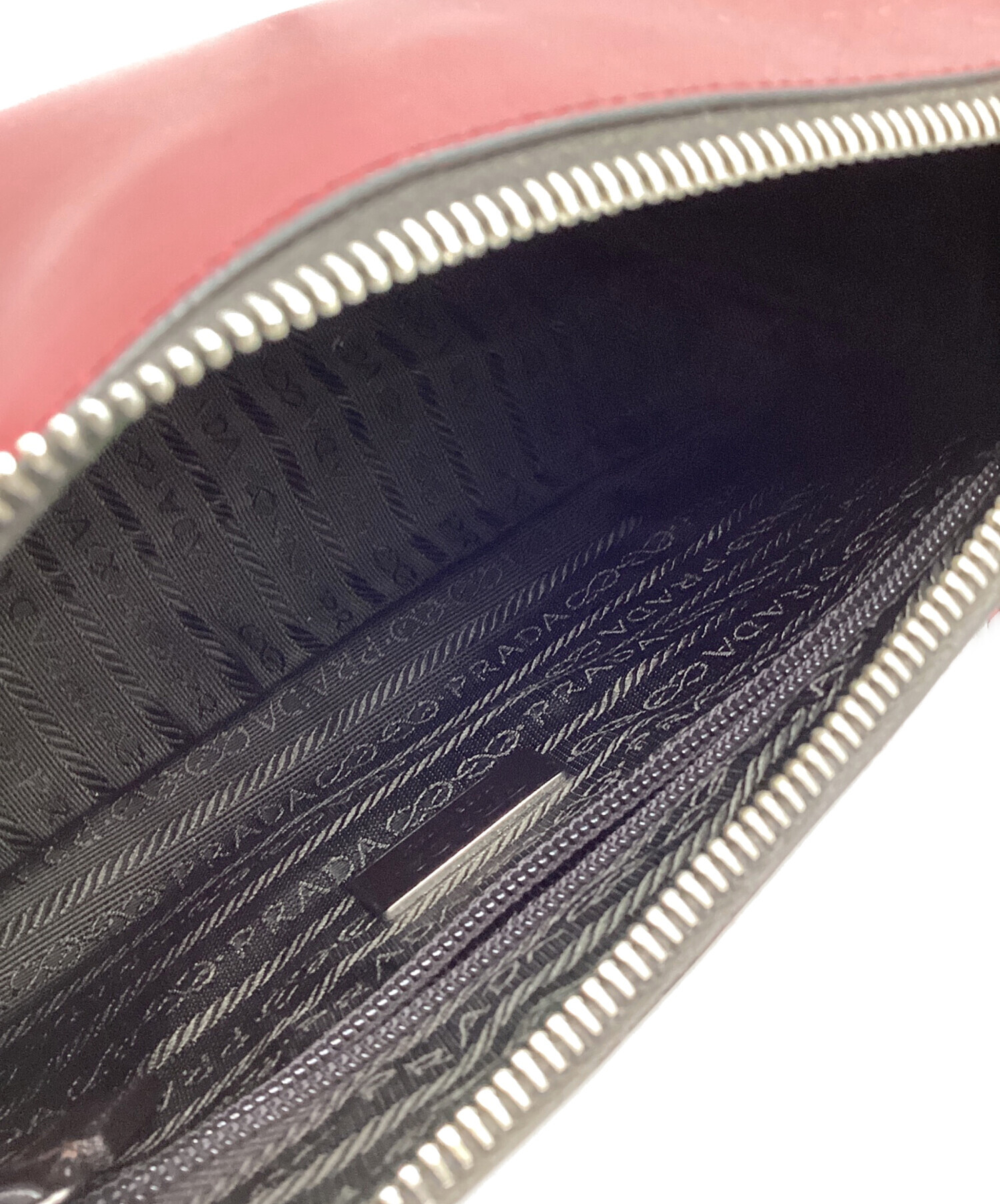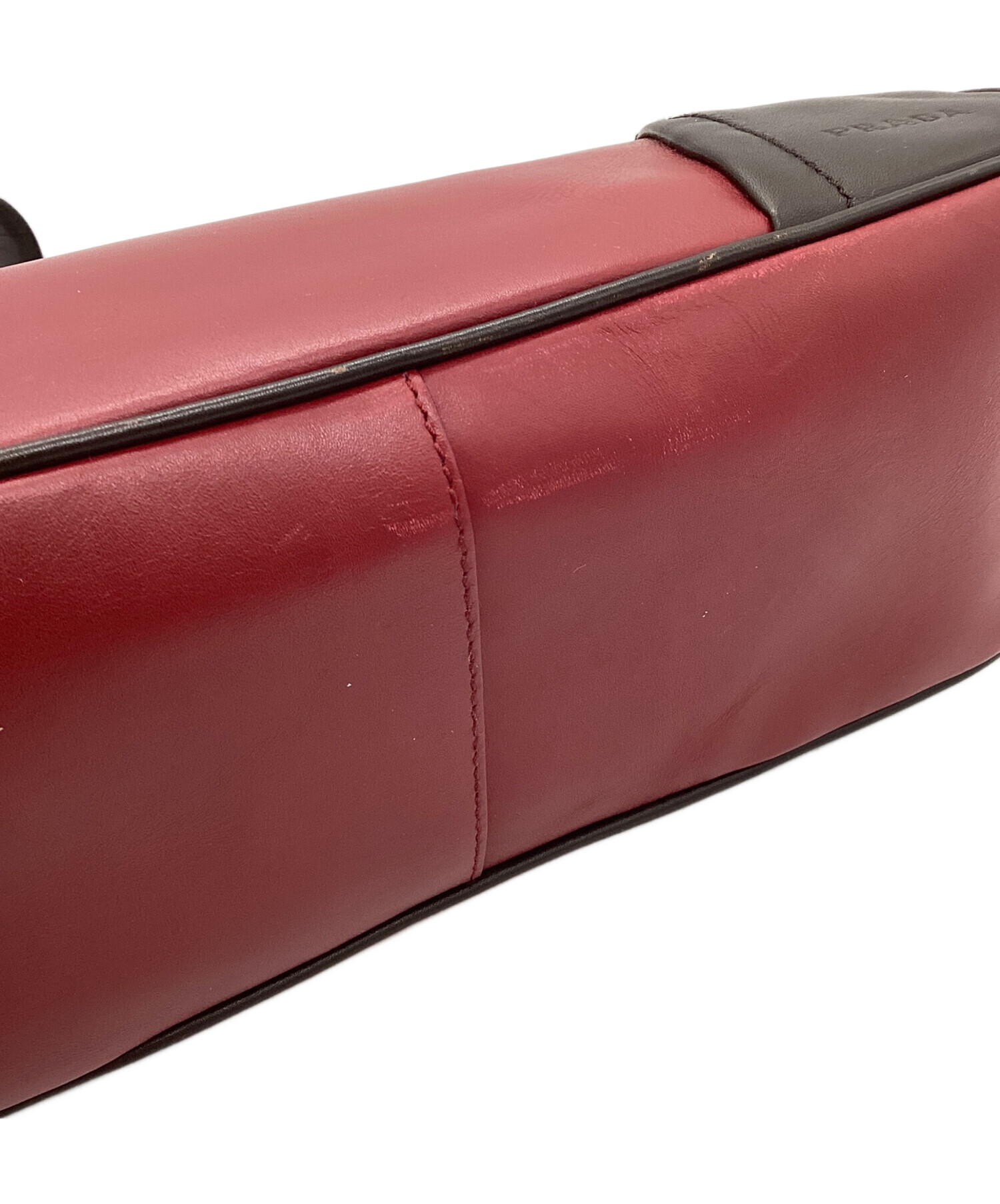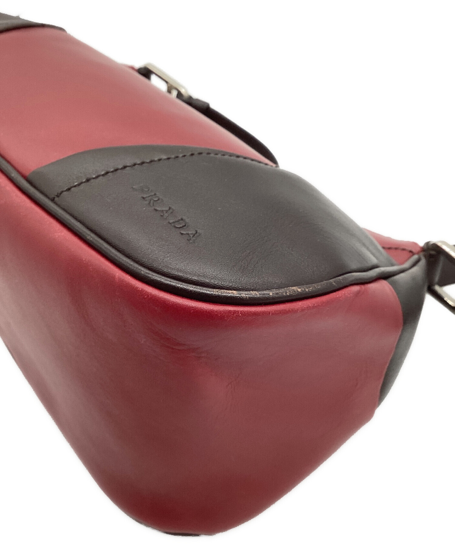 • PRADA(プラダ)PRADA (プラダ) ロゴ レザーワンショルダーバッグ レッド×ブラウンの古着・服飾アイテム 角スレ有