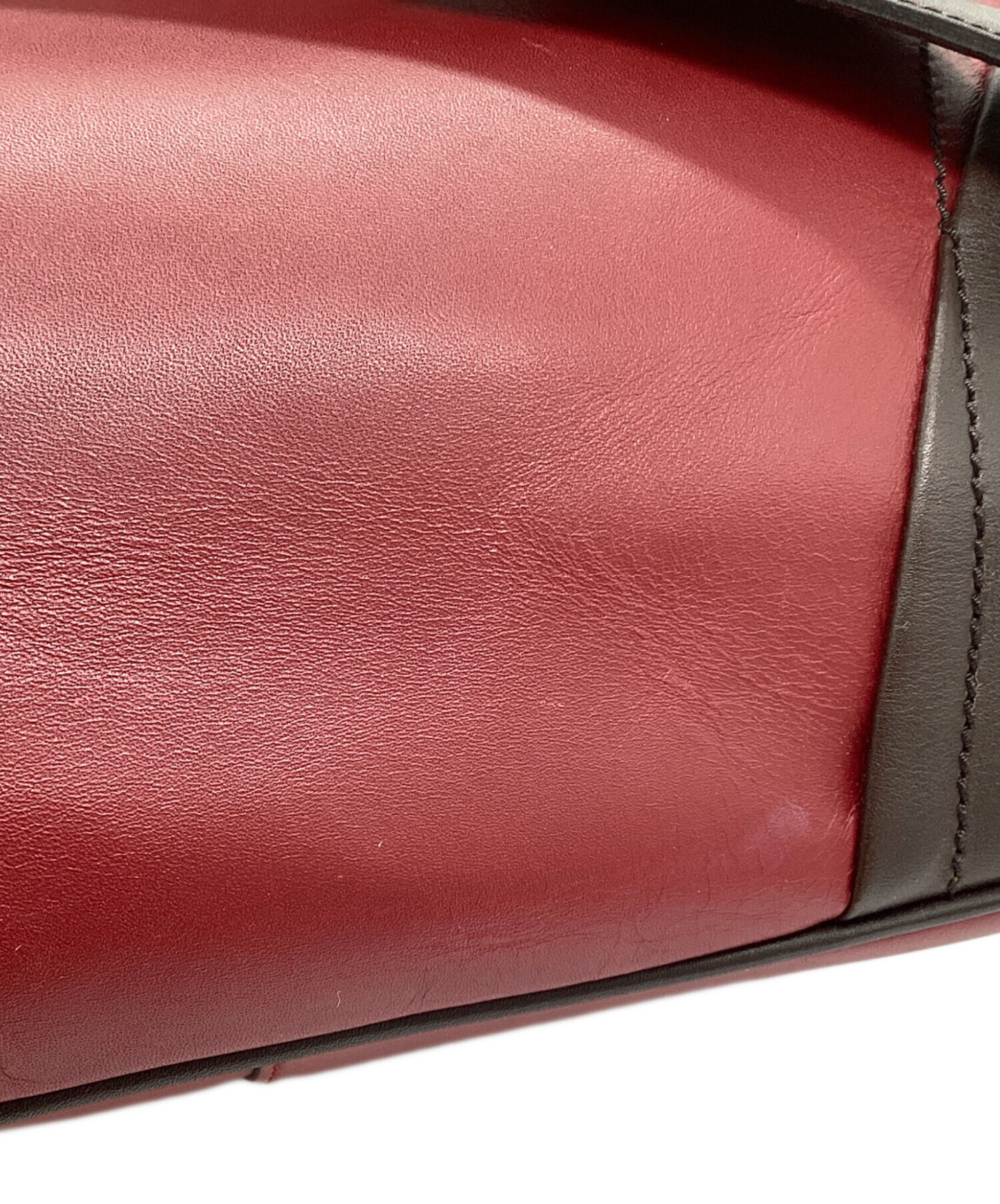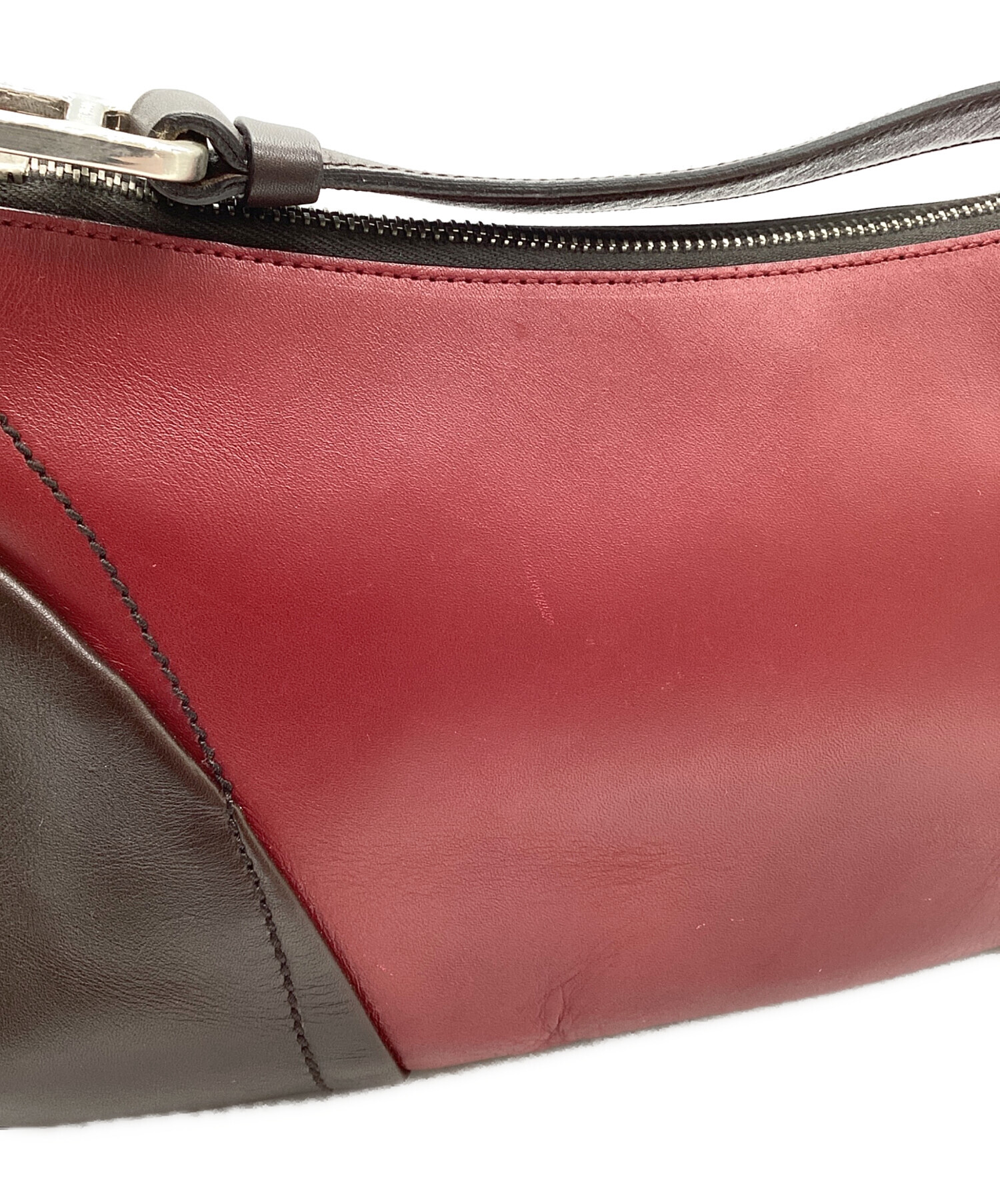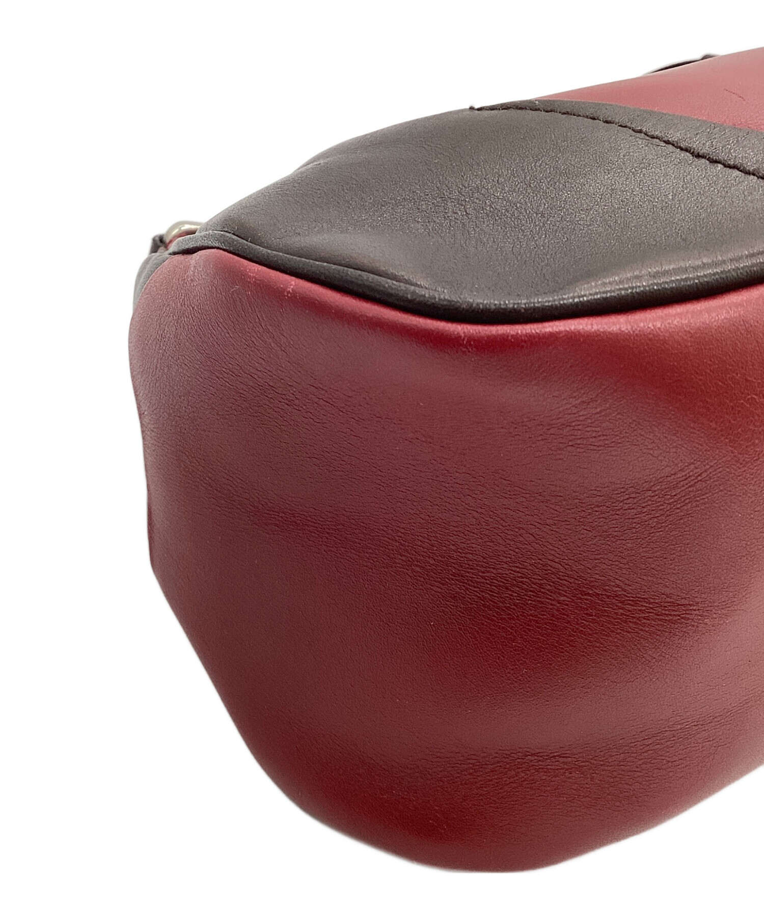 • PRADA(プラダ)PRADA (プラダ) ロゴ レザーワンショルダーバッグ レッド×ブラウンの古着・服飾アイテム 角スレ有