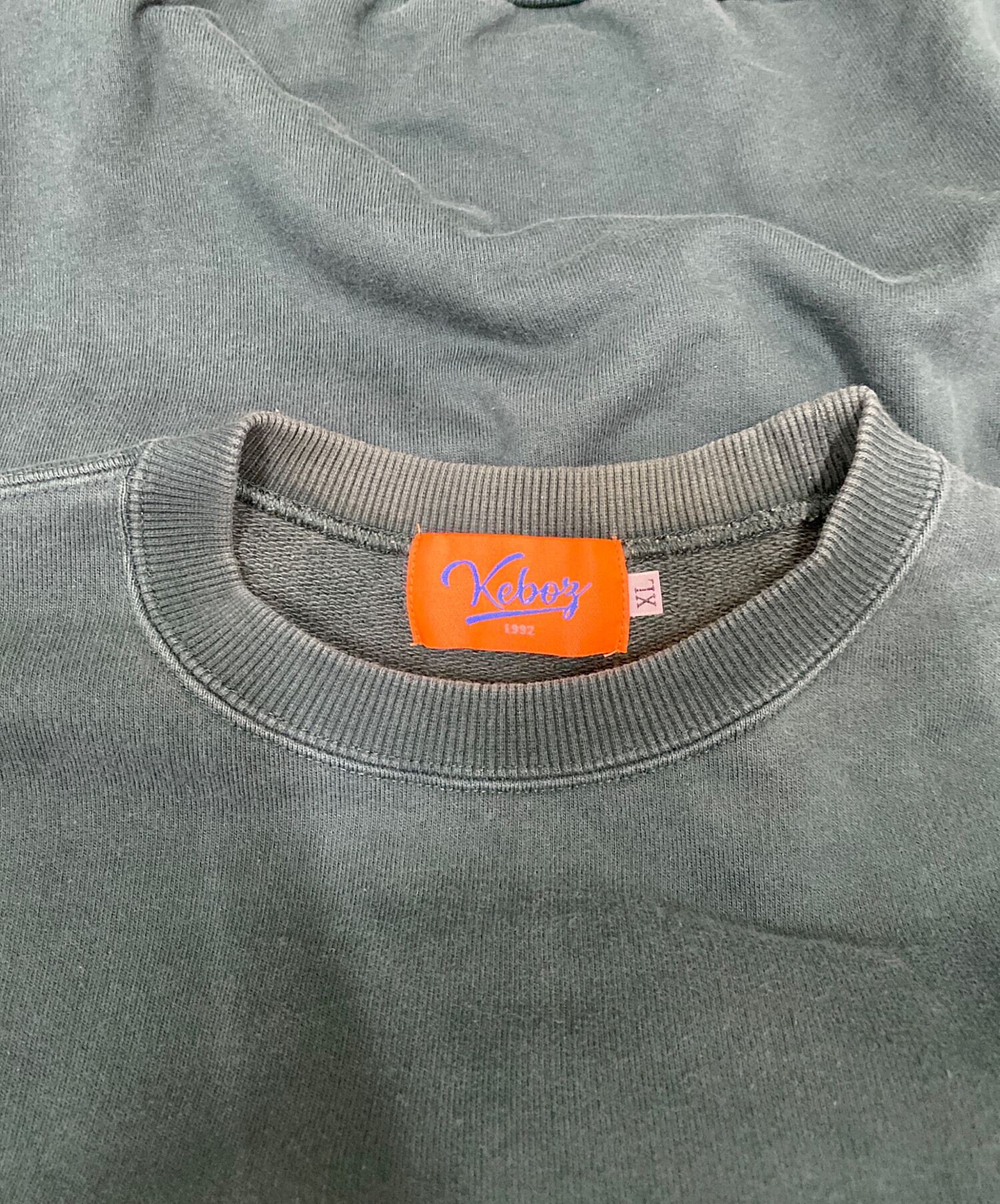 • KEBOZ(ケボズ)KEBOZ (ケボズ) 刺繍ロゴスウェット グリーン サイズ:XLの古着・服飾アイテム 襟元ヨゴレ有