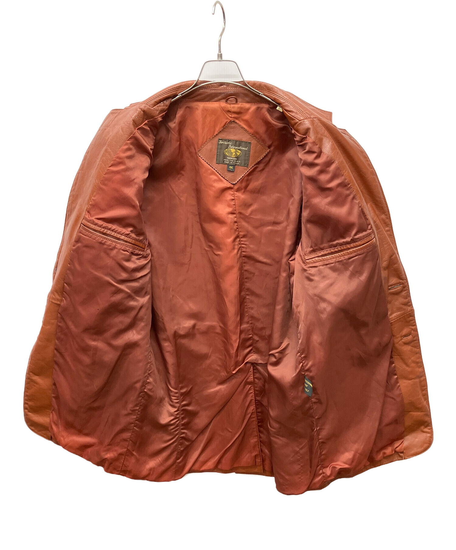 • FANTASTIC INTERNATIONAL(ファンタスティック インターナショナル)FANTASTIC INTERNATIONAL (ファンタスティック インターナショナル) レザーコート ブラウン サイズ:Lの古着・服飾アイテム やぶれ有
