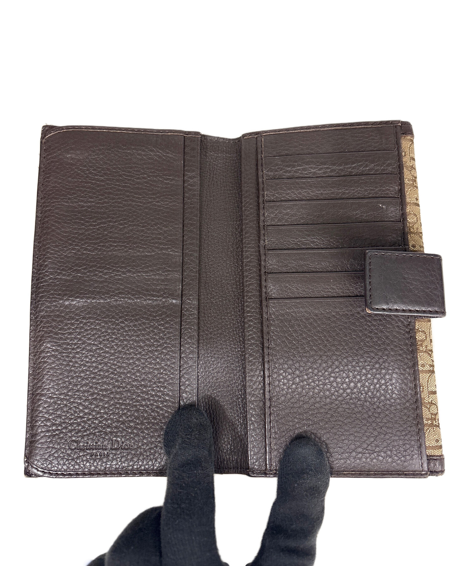 | スタッフコメント | Christian Diorを代表するトロッターラインの長財布。ブランドアイコンである総柄デザインと、ブラウン×ベージュの上品な配色が高級感を演出します。 |