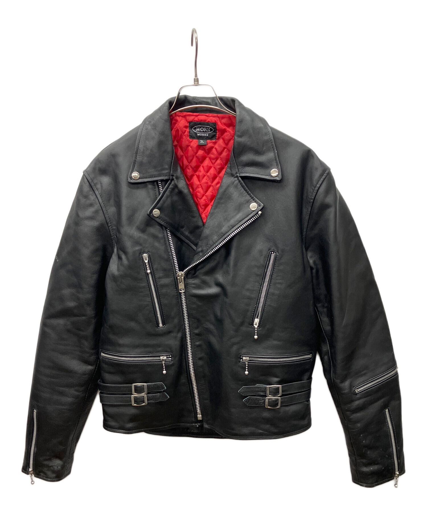 • HORN WORKS(ホーンワークス)HORN WORKS (ホーンワークス) レザージャケット ブラック サイズ:3Lの古着・服飾アイテム キズ有