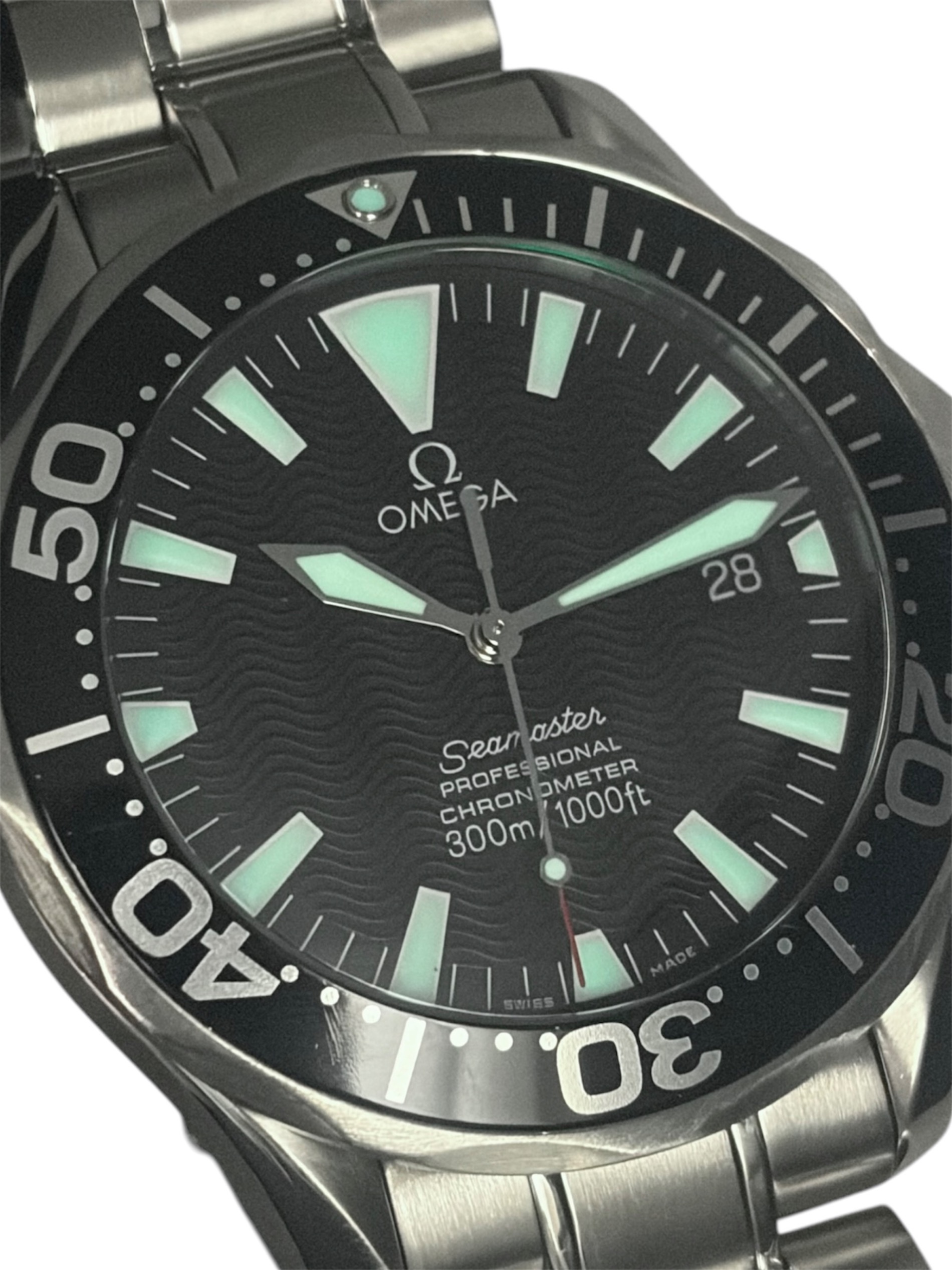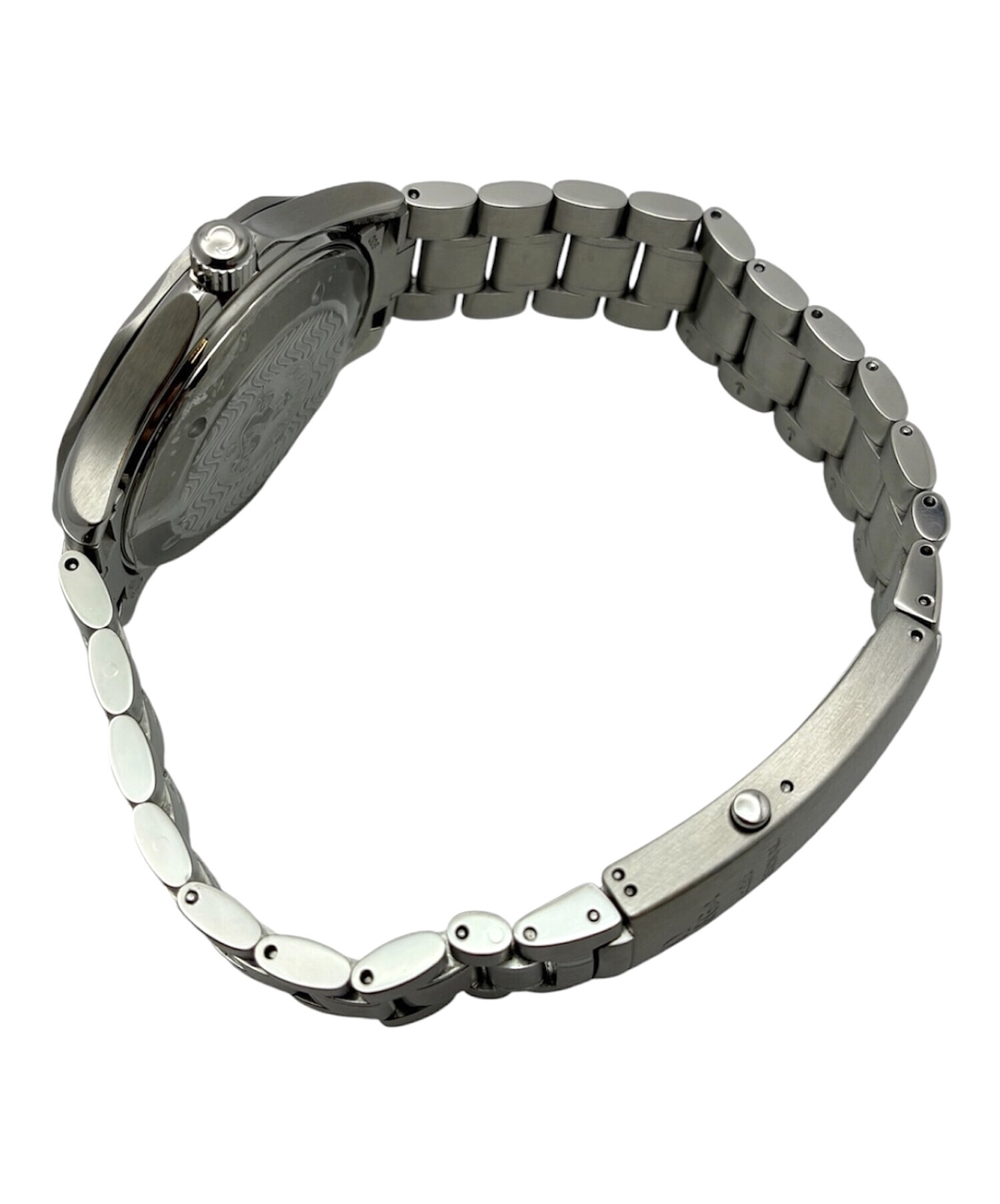 | スタッフコメント | 通称ピーター・ブレイクとして知られる、オメガのダイバーズモデル。特徴的なソードハンドと波模様のブラックダイヤルが生み出す、スポーティーでありながらどこか品のある表情が魅力です。300m防水を備えた本格仕様ながら、オンオフ問わず取り入れやすいバランスの良さもポイント。近年はこの世代ならではのデザインを求める声も多く、実用性とコレクション性を兼ね備えた一本です。 |