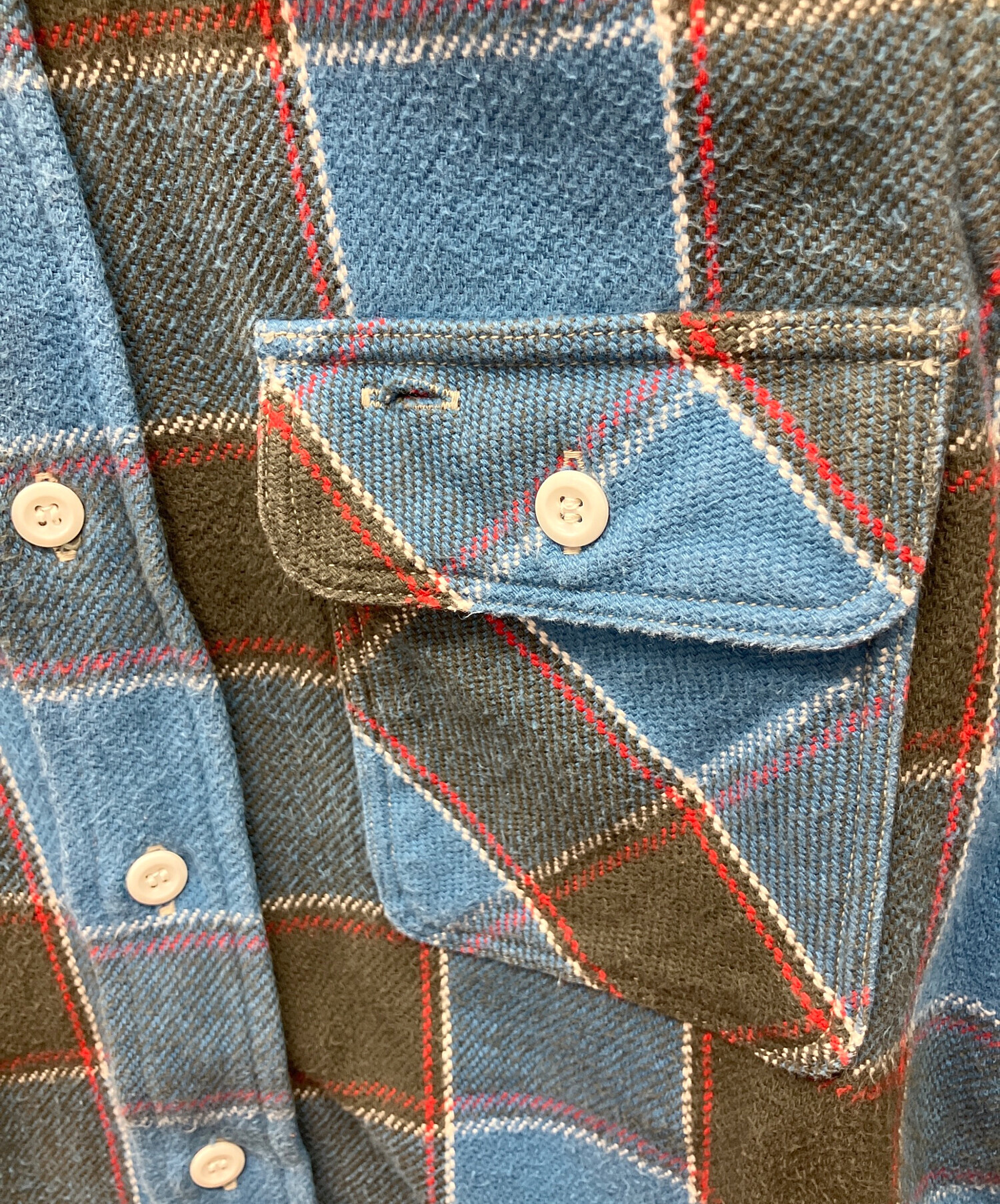 スタッフコメント WAREHOUSEのヘビーネルチェック長袖シャツ。肉厚で保温性の高いネル素材を使用し、秋冬シーズンに活躍する一枚。ライトブルー×ブラックのチェック柄がコーディネートのアクセントになり、カジュアルスタイルに最適です。