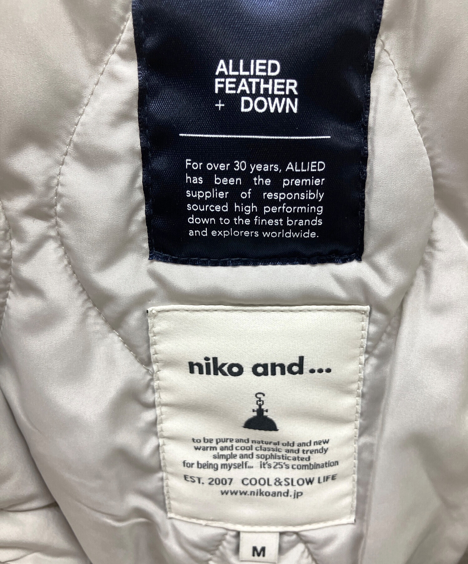 | スタッフコメント | niko andの中綿ジャケットは、軽い着心地ながらしっかりと暖かさを感じられる一着。ベージュカラーでコーディネートに馴染みやすく、カジュアルからきれいめまで幅広く活躍します。デイリー使いにちょうど良いバランスのアイテムです。 |
