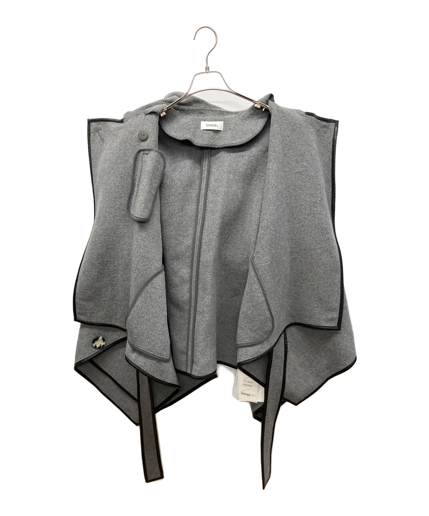 | スタッフコメント | グレー×ブラックの配色が上品で洗練された印象を与える、Snidelのポンチョコート。女性らしい柔らかなシルエットと、ブランドらしいフェミニンな雰囲気が魅力の一着です。 |