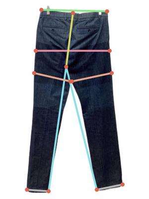 ウエスト周り約81cm ヒップ周り約94cm もも周り約58cm 裾周り約35.5cm 股上(後ろ)約35cm 股下(後ろ)約76cm