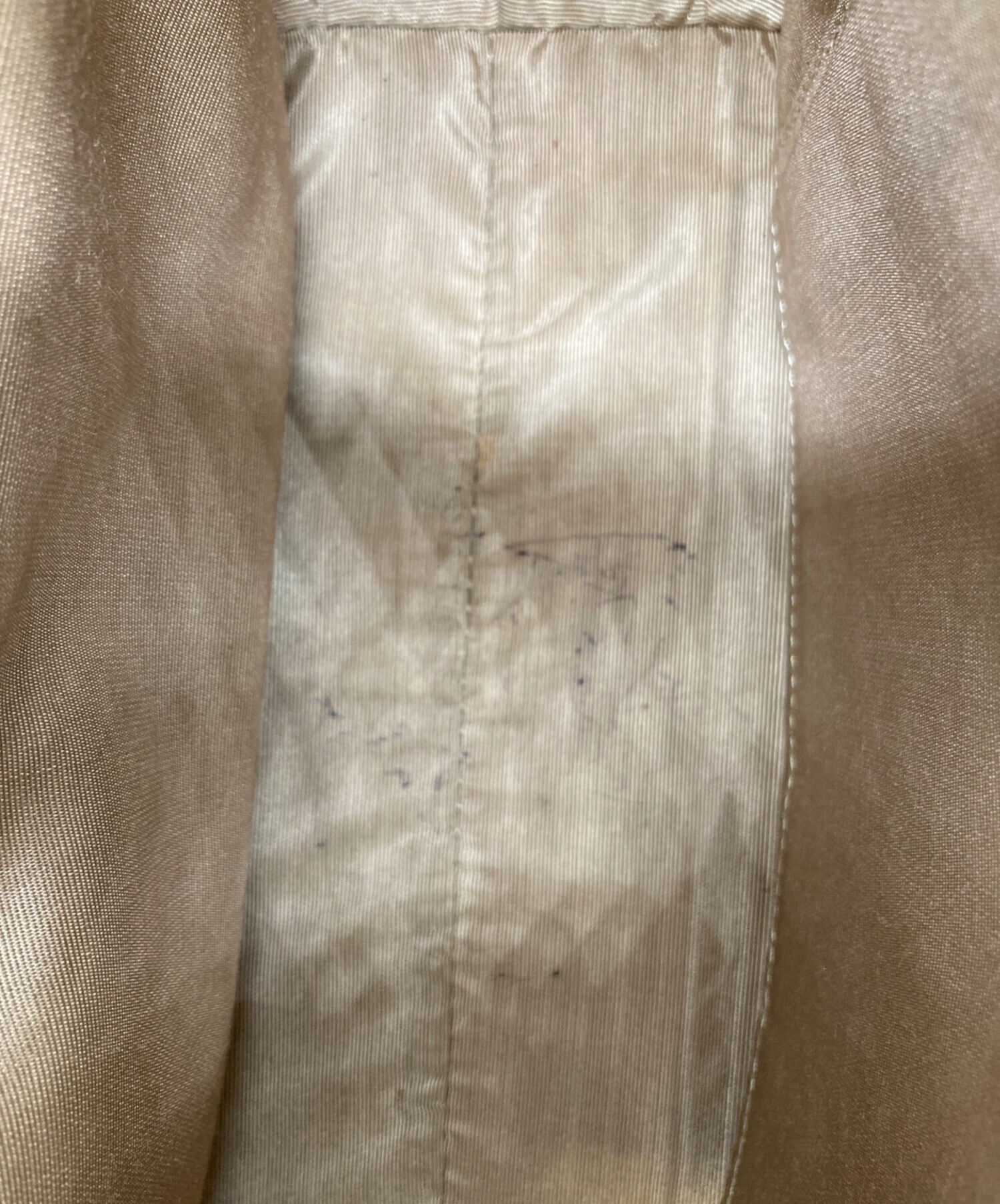 目立つシミや汚れ、におい等がある場合は商品画像や説明文にて極力表記させていただいておりますが、中古品という商品の特性上、全ての瑕疵や不備、洋服直し箇所を撮影・記載をすることは難しくなっております。また、ほとんどのアイテムは店頭と併売しておりますため、出品掲載時からコンディションが変動している場合もございます。あらかじめご了承くださいませ。