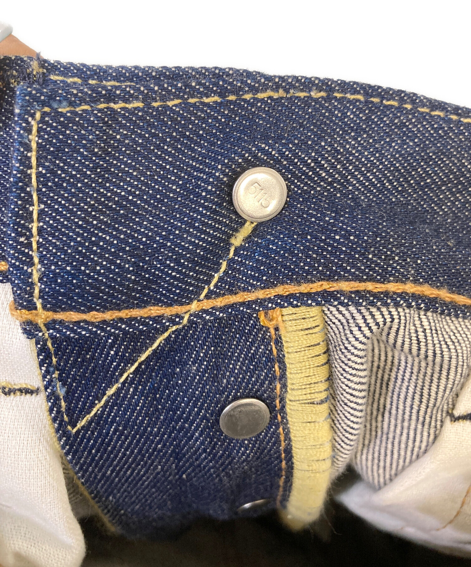 | 備考 | 2017年製 ホワイトオーク工場製 ボタン裏5115 赤耳/イエロー×オレンジステッチ スモールe/ポケット裏シングルステッチ/黒カン トップボタン下Vステッチ |