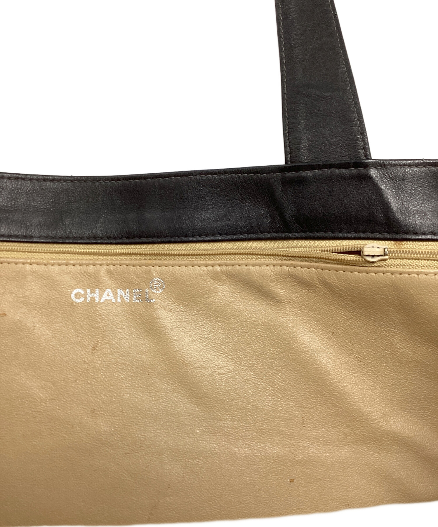 • CHANEL(シャネル)CHANEL (シャネル) シャネル/ロゴレザートートバッグ ブラックの古着・服飾アイテム ファスナー持ち手破損有