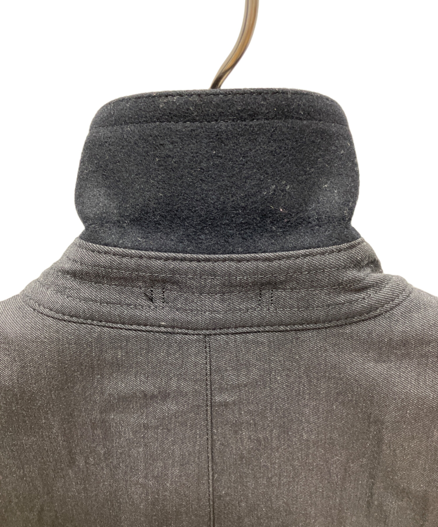 | 素材 | ・コート素材 表地表面:毛 85% ポリエステル 11% 絹 4% 裏面:ポリエステル 100% (ウレタン樹脂で貼り合わせ) レザー部分:牛革 裏地:キュプラ ・ライナー素材 表地:キュプラ 100% 中わた:ポリエステル 100% 裏地:ポリエステル |
