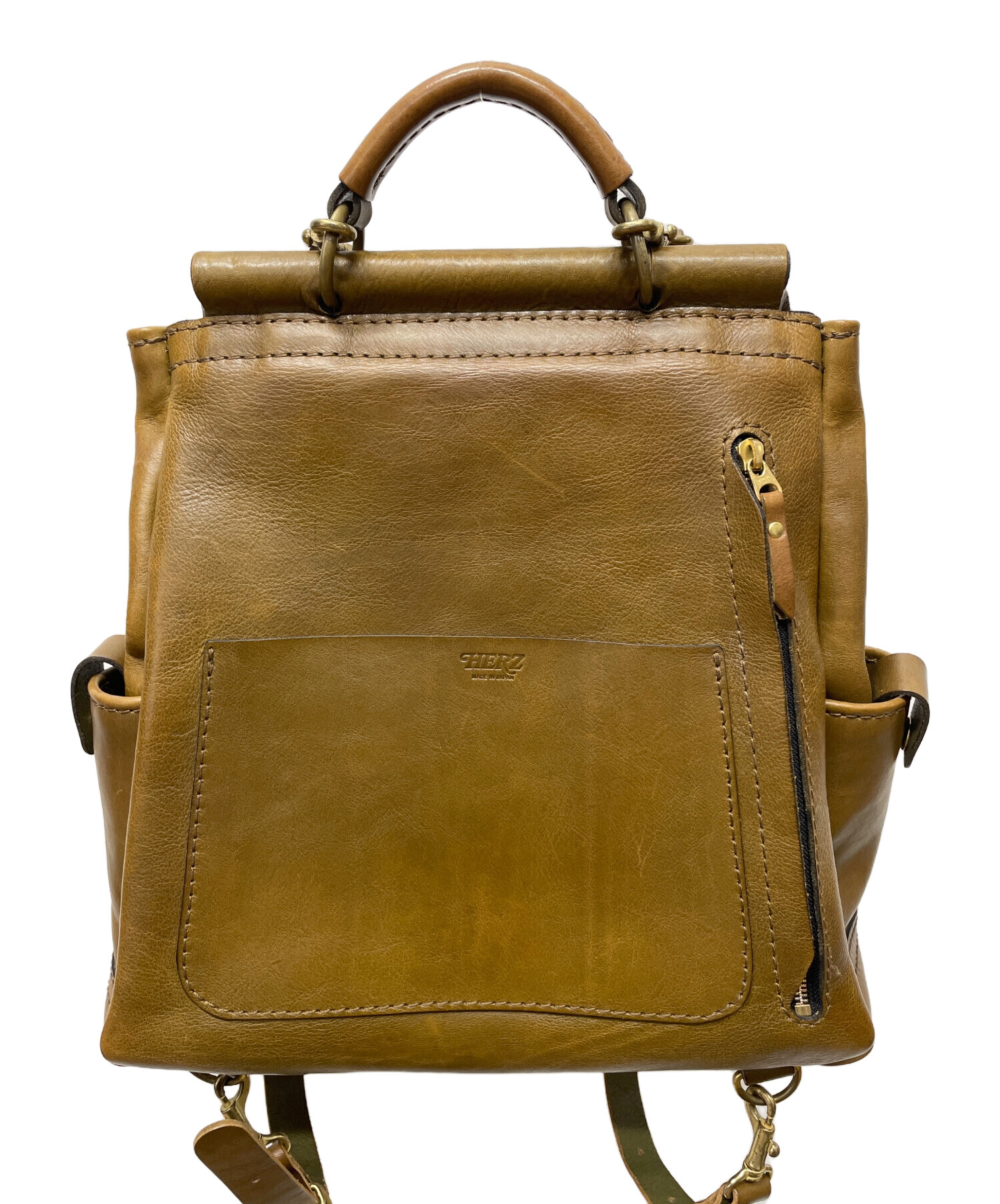 • Herz(ヘルツ)Herz (ヘルツ) 棒屋根クラシックリュック ブラウンの古着・服飾アイテム 金具クスミ有