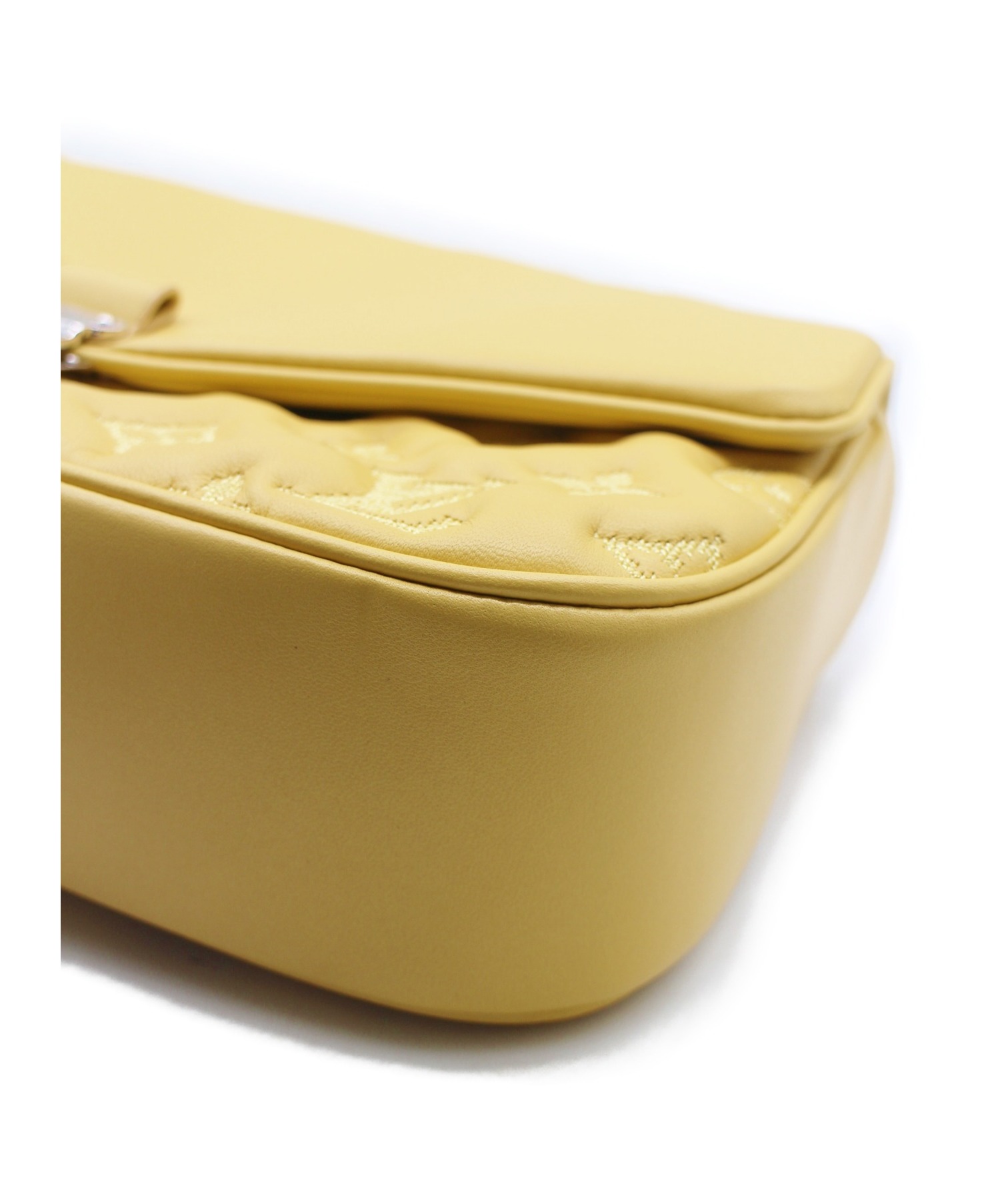 【スタッフコメント】モノグラム柄のステッチが施されたラムレザー素材のチェーンショルダーバッグです。フロントはロック開閉式になっており、安全面にも配慮された仕様となっています。