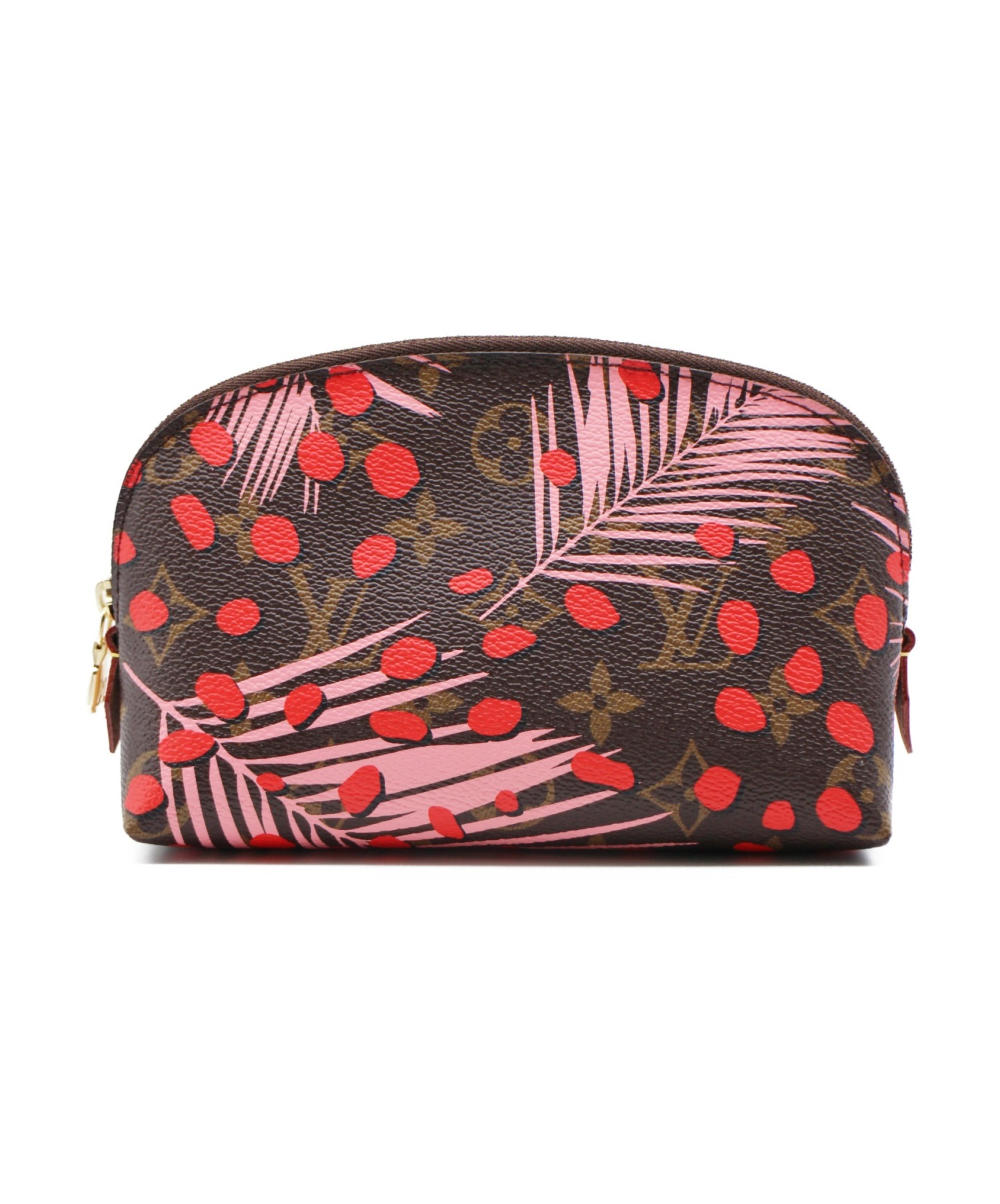 【スタッフコメント】モノグラムとプリントを掛け合わせたデザインのポーチです。コスメや小物を収納でき、バッグの中身を整理したい時などに便利にお使いいただけるコスメポーチです。
