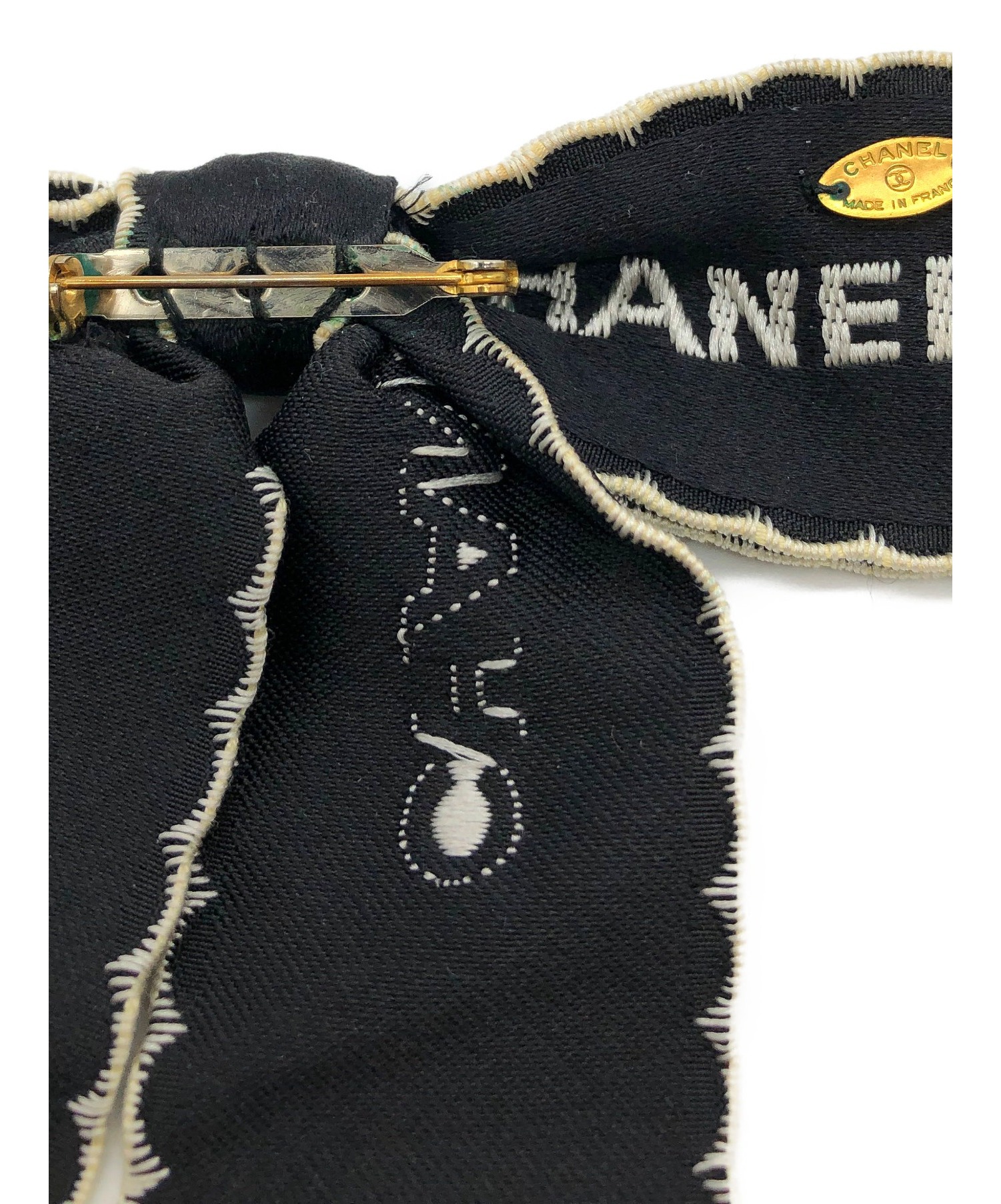 【スタッフコメント】CHANELのロゴが刺繍された大きなリボンブローチです。シャツに付けるのはもちろん、鞄に付けたりと応用が利くアイテムになります。