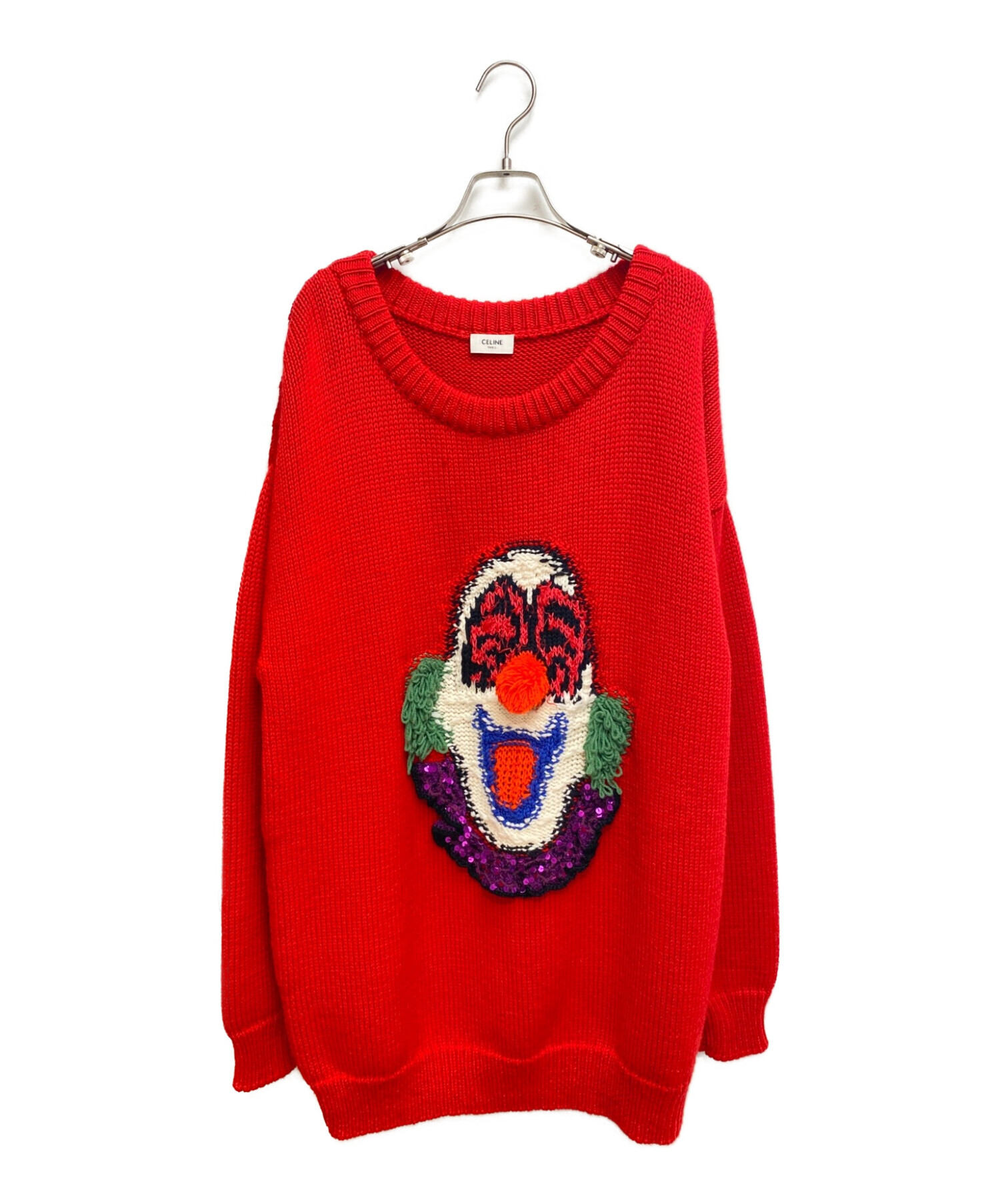 | スタッフコメント | フロントにピエロの装飾をあしらったオーバーサイズニットです。デザイン部分にはスパンコールや様々な糸を使用しており、手の込んだディテールとなっています。発色の良いレッドカラーでコーディネートのアクセントになるアイテムです。 |