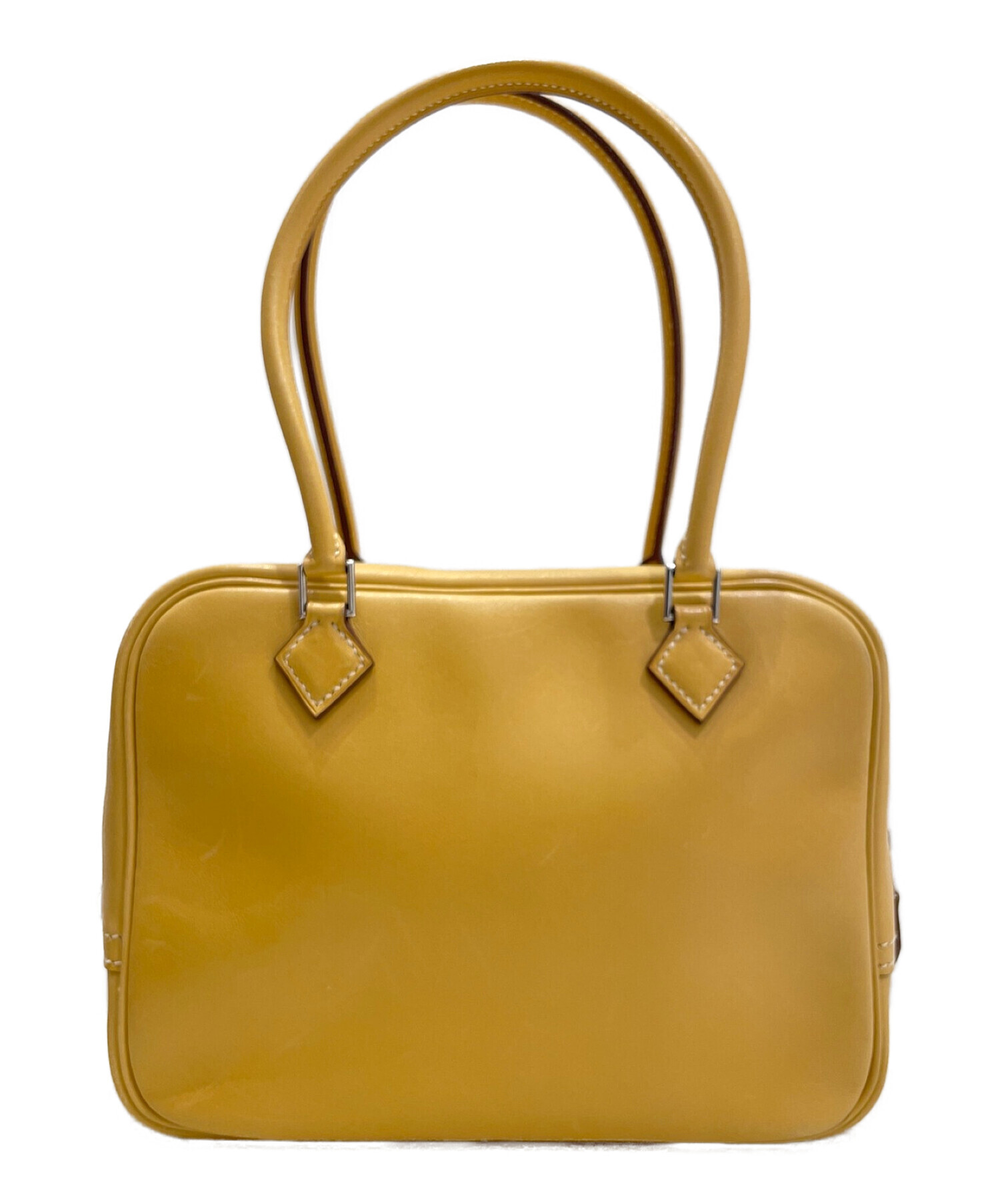 | スタッフコメント | 定番人気のハンドバッグであるミニプリュム20でございます。スクエア型の可愛らしいフォルムが魅力的で、コンパクトながらにも開閉口がサイドの下まで繋がっている為、開け口が広くモノの出し入れがスムーズに行えます。また、素材にはボックスカーフを使用しており、適度な光沢と艶感がより上品な仕上がりのオススメのアイテムです。 |