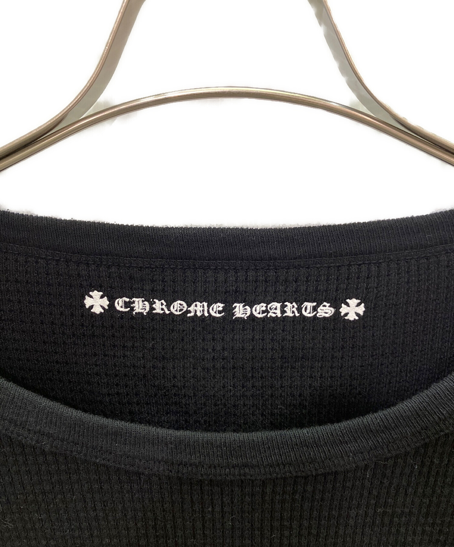 スタッフコメント CHROME HEARTS(クロムハーツ)のサーマルコットンニットカットソーでございます。カラーはブラックでどのコーデにも合わせやすいカラーとなっております。