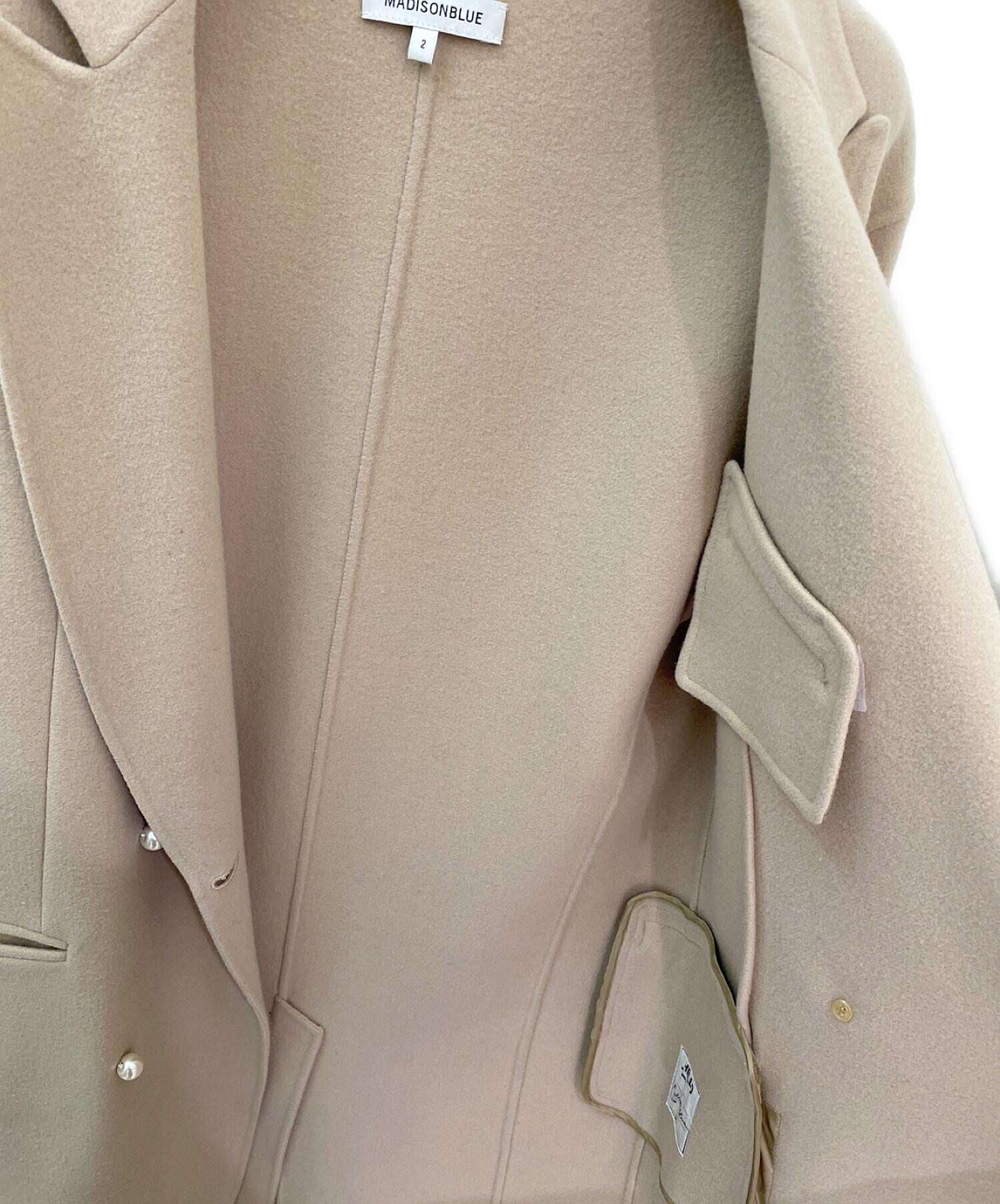 | スタッフコメント | フェイクパールのボタンが可愛らしいMADISON BLUEのロングコートでございます。シンプルなデザインですが、フェイクパールのボタンが女性らしい印象を与えてくれます。タートルネックやスラックスと合わせて綺麗めに、デニムやニットと合わせてカジュアルにも着ていただけるアイテムです。 |