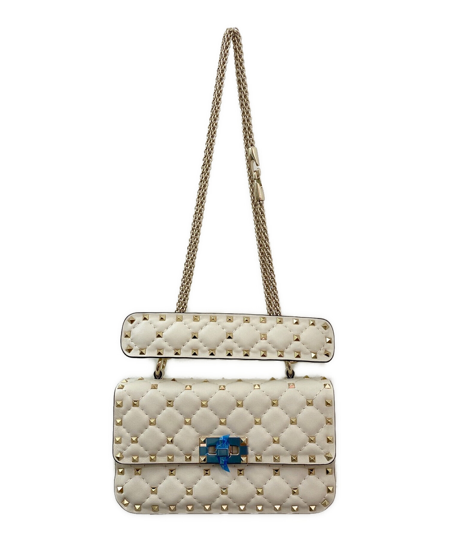| スタッフコメント | プラチナ仕上げのスタッズが全体に施されたショルダーバッグになります。トーンオントーンのステッチによるキルティングディテールが特徴です。取り外し可能なトップハンドルとスライド式チェーンによりハンドバッグ、ショルダーバッグ、クロスボディバッグとしてご使用可能です。 |