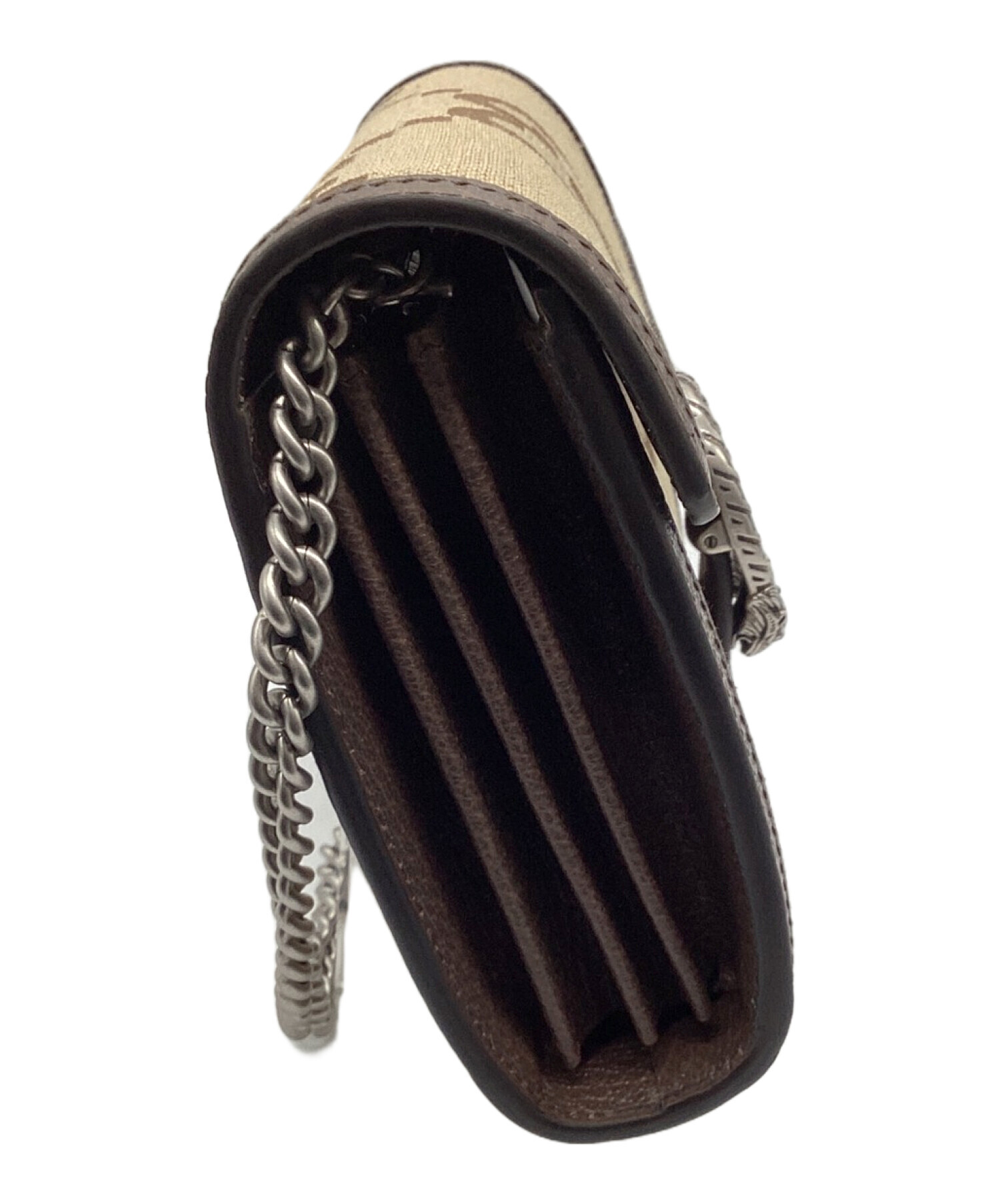 | スタッフコメント | このチェーンウォレットはGUCCIのGGスプリームキャンパスという環境に配慮した素材を使用していることやライオンをモチーフとした装飾がほどこされていることが特徴の商品となっております。 |