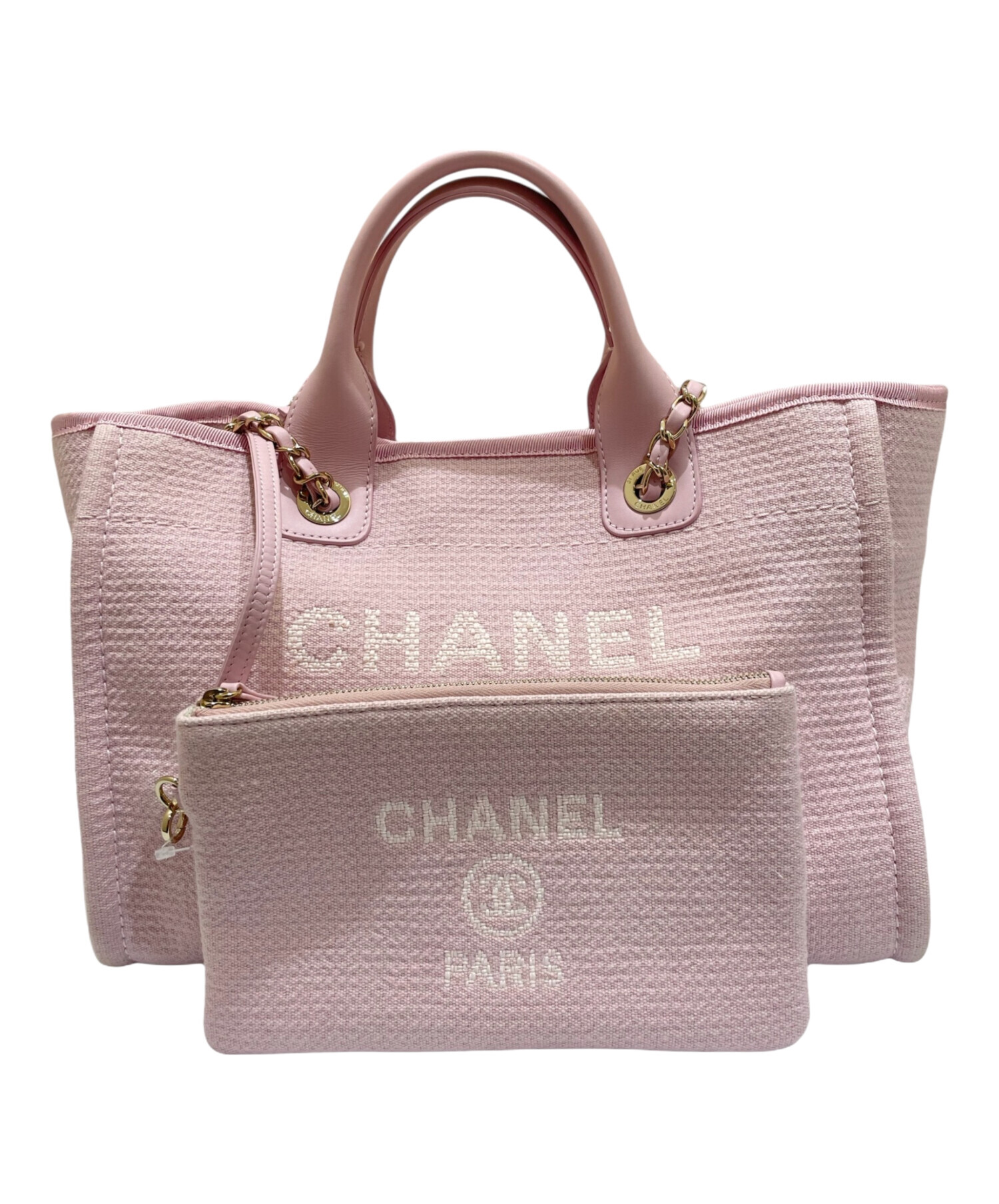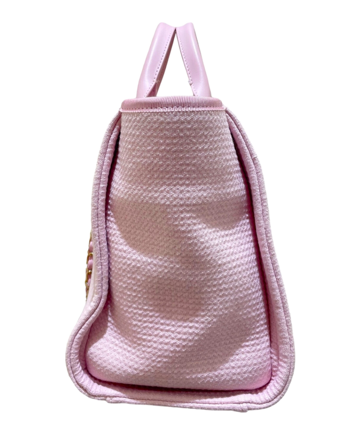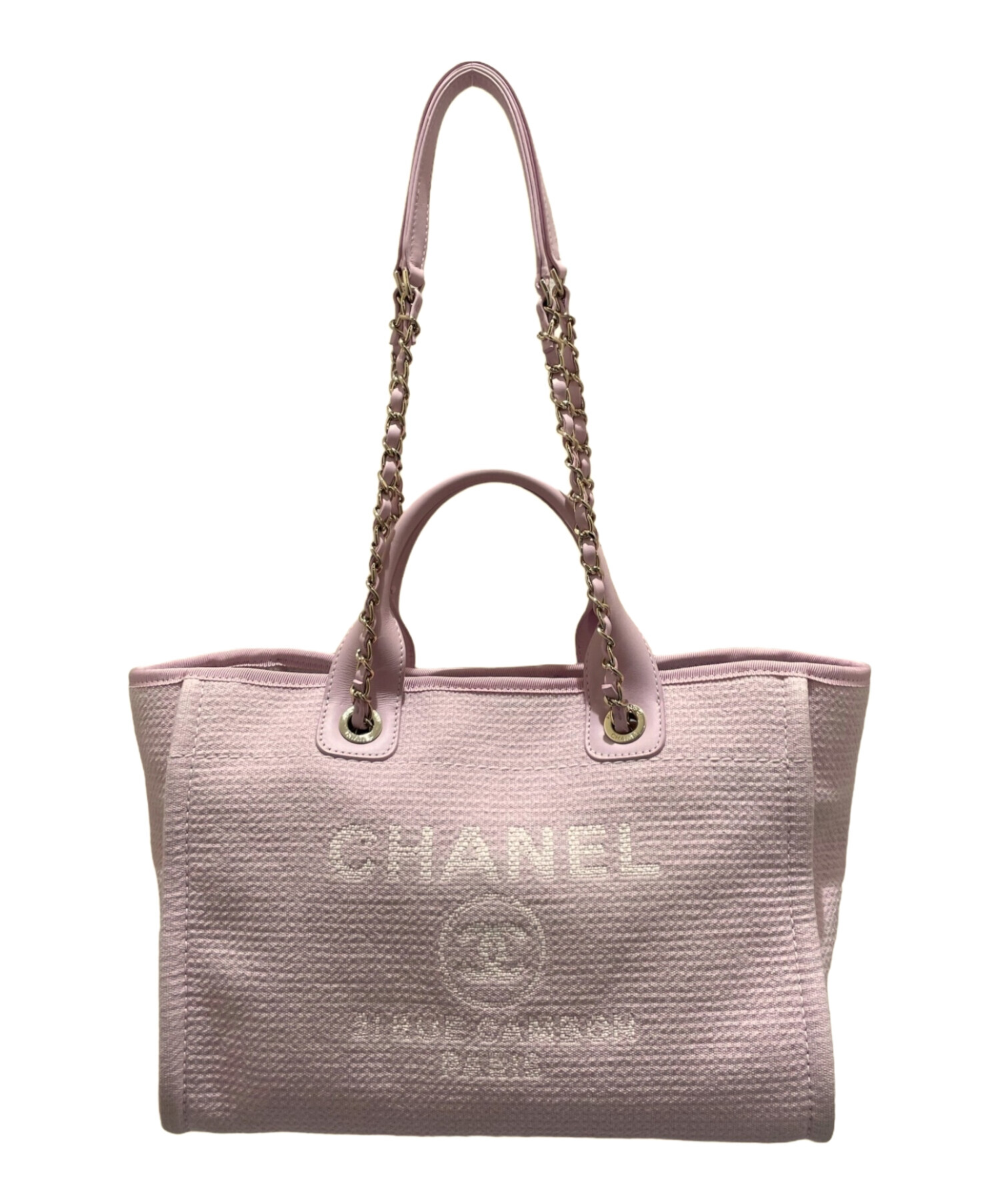 | スタッフコメント | 淡いピンクカラーが可愛らしい印象を与えるドーヴィルバッグでございます。長めのチェーンショルダーも付いており、ハンドバッグとショルダーバッグの2wayでお使いいただけます。収納力にも優れており、旅行の際にも大活躍します。 |