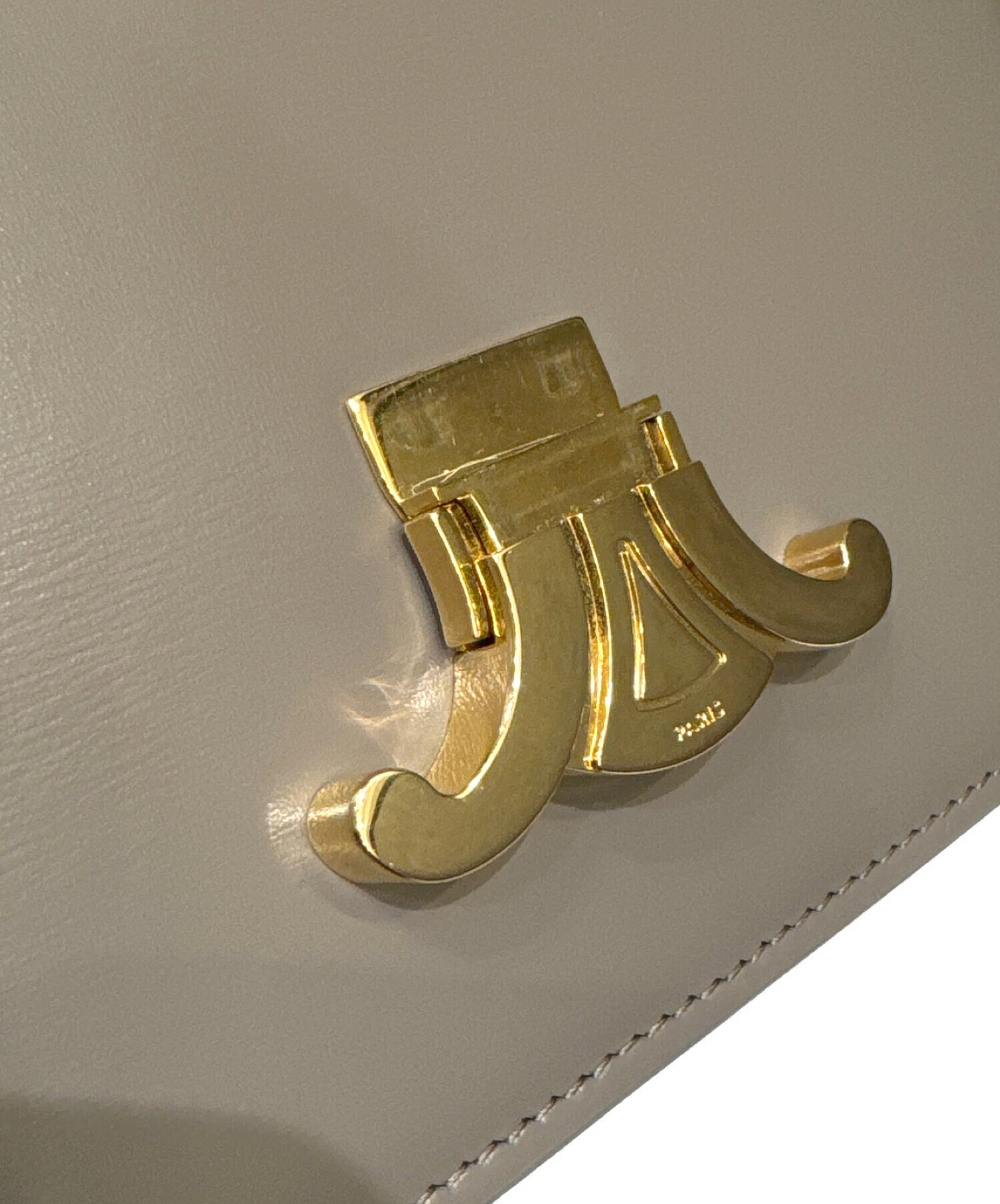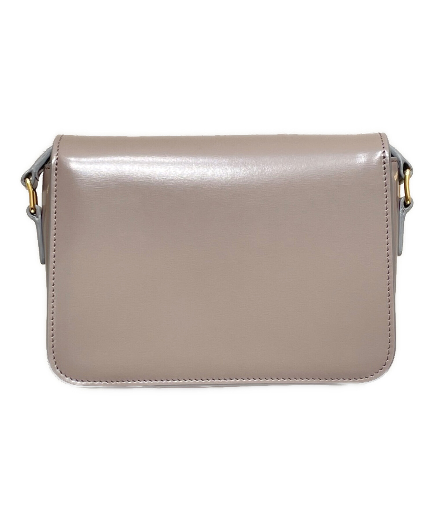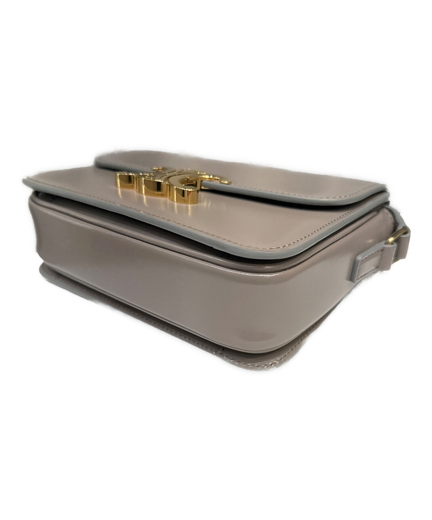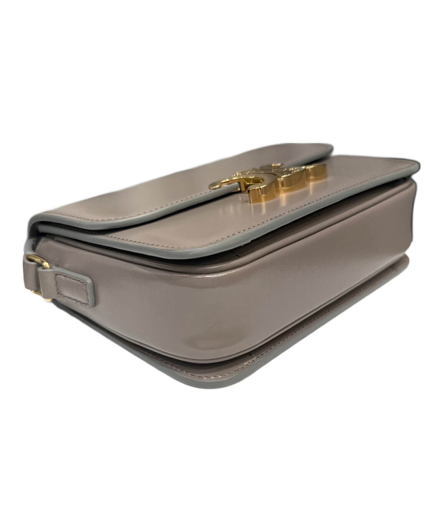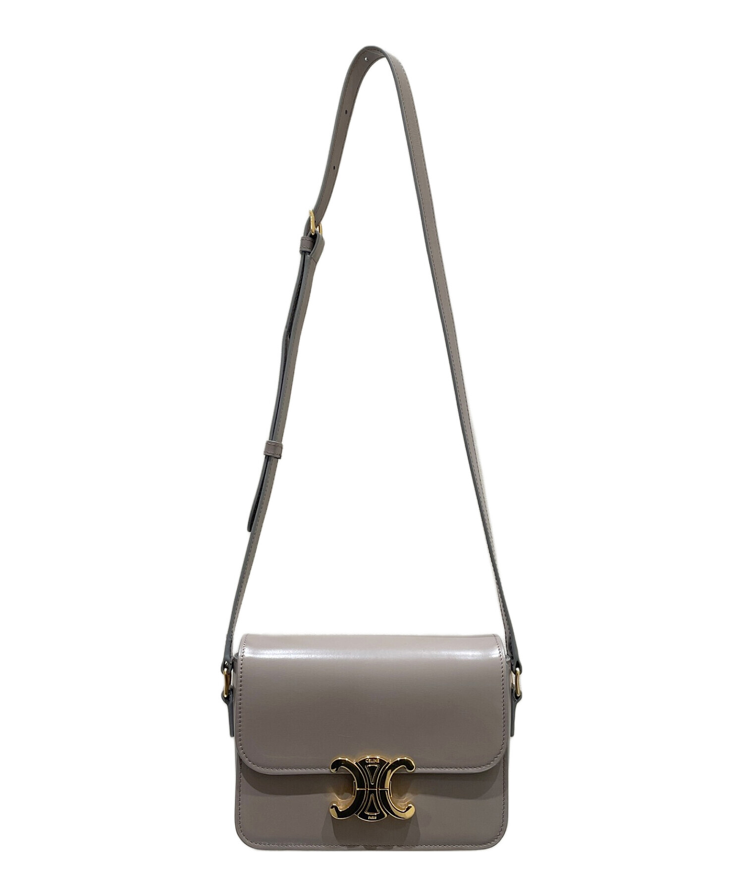 | スタッフコメント | フロントに配置されたゴールドのトリオンフが目を惹くショルダーバッグでございます。素材には美しい光沢を放つカーフレザーを使用しており、ラグジュアリーな印象を与えます。コンパクトでありながら財布や携帯、コスメ等を十分収納でき、デイリーユースに適しています。 |