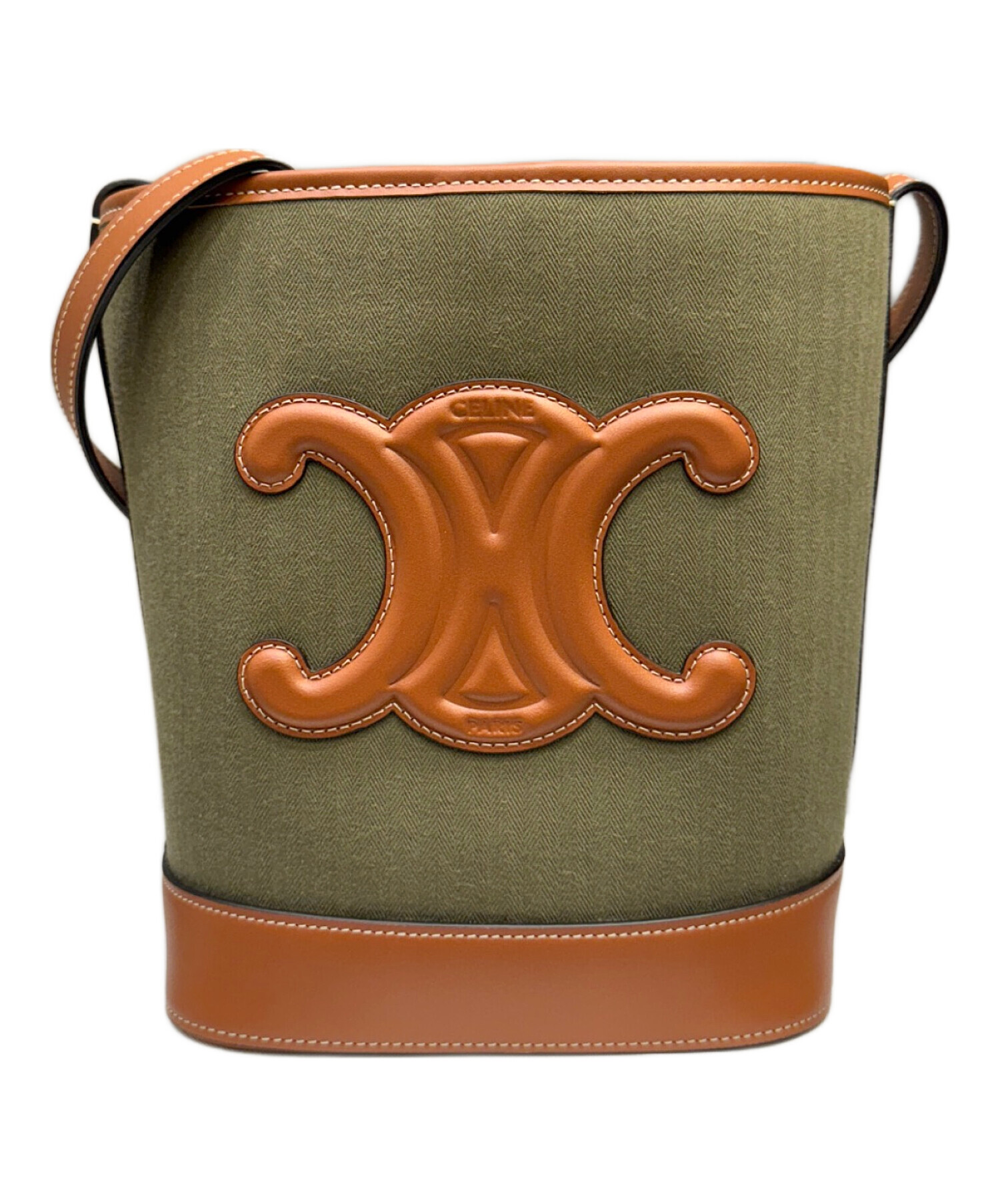 | スタッフコメント | 中央に配置されたブラウンのトリオンフとモスグリーンのファブリックが目を惹くショルダーバッグでございます。小ぶりなサイズ感ながらスマホやコスメ等の必需品が収納できるため、デイリーユースに最適です。ストラップの長さが十分にあるので、肩掛けやクロスボディーとしてお使い頂ける点も魅力的です。 |