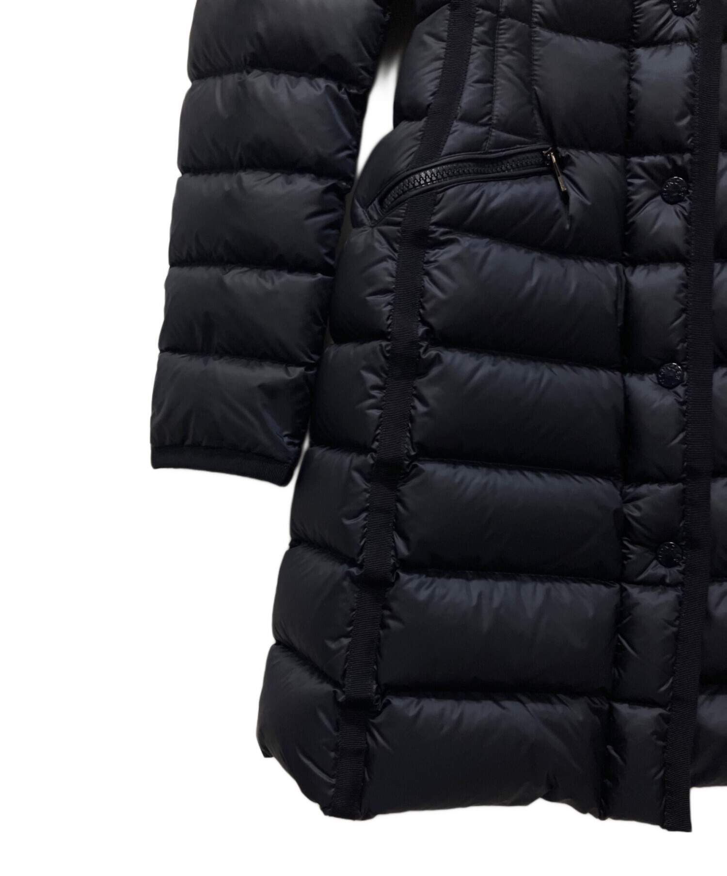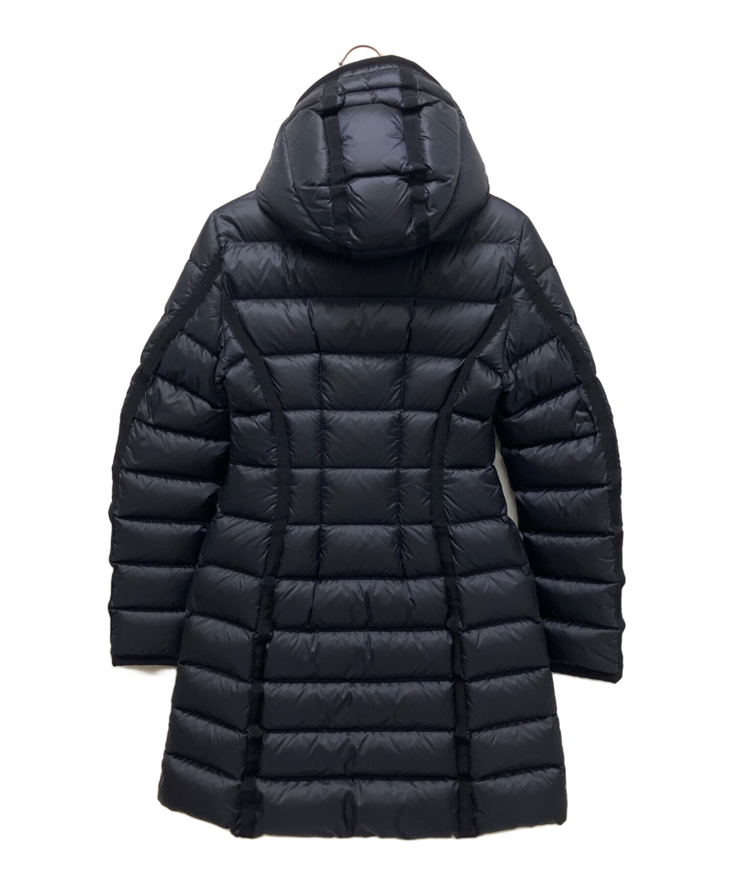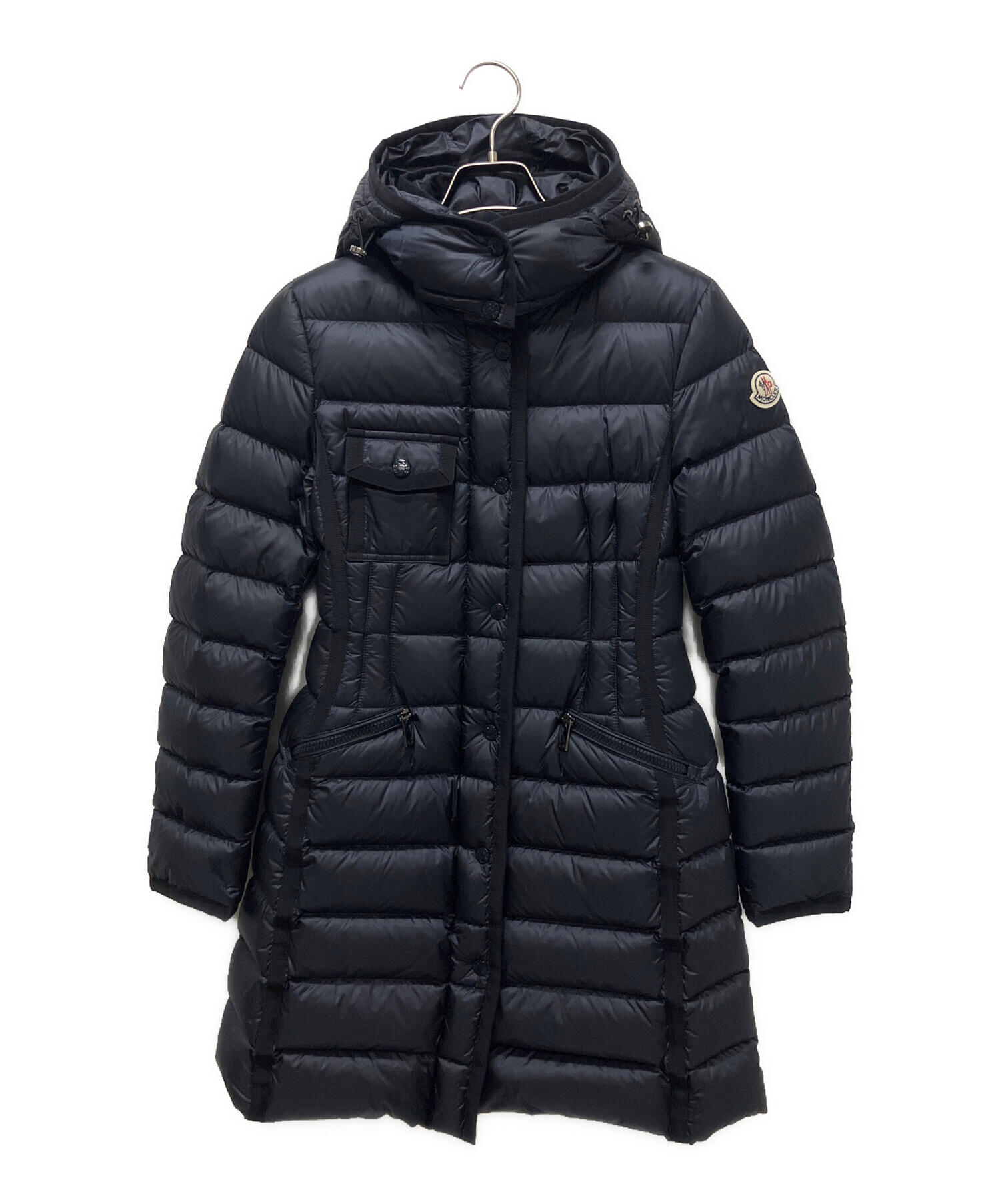 | スタッフコメント | レディースの人気定番ラインのエルミンヌのブラックカラーでございます。縦のグログランテープラインが特徴でスタイリッシュでエレガントなデザインで長年愛されてきたモデルでございます。フードが取り外し可能なため、気候やシーンに応じてアレンジが可能となっており、カジュアルな外出から旅行まで、多様なシーンで活躍する1着でございます。 |