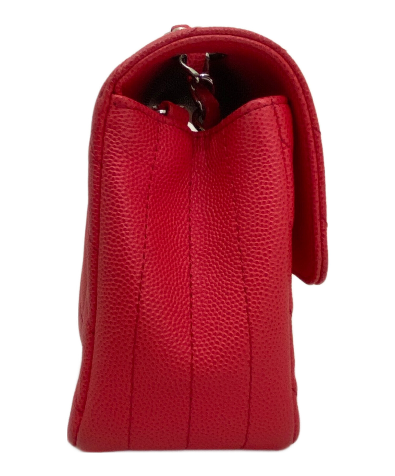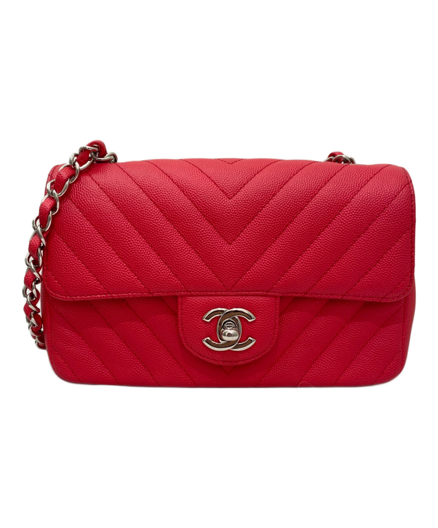 | スタッフコメント | 上品なシェブロンステッチが美しい、CHANELのチェーンショルダーバッグ。目を惹くレッドピンク系カラーは、華やかさと大人の可愛らしさを兼ね備えた絶妙な色味。横幅約20cmの程よいサイズ感で、コンパクトながらもスマホやミニ財布、リップなどの必需品がしっかり収まります。シルバーのチェーンがエレガントさを引き立て、カジュアルからフォーマルまで幅広いコーデにマッチ。 |