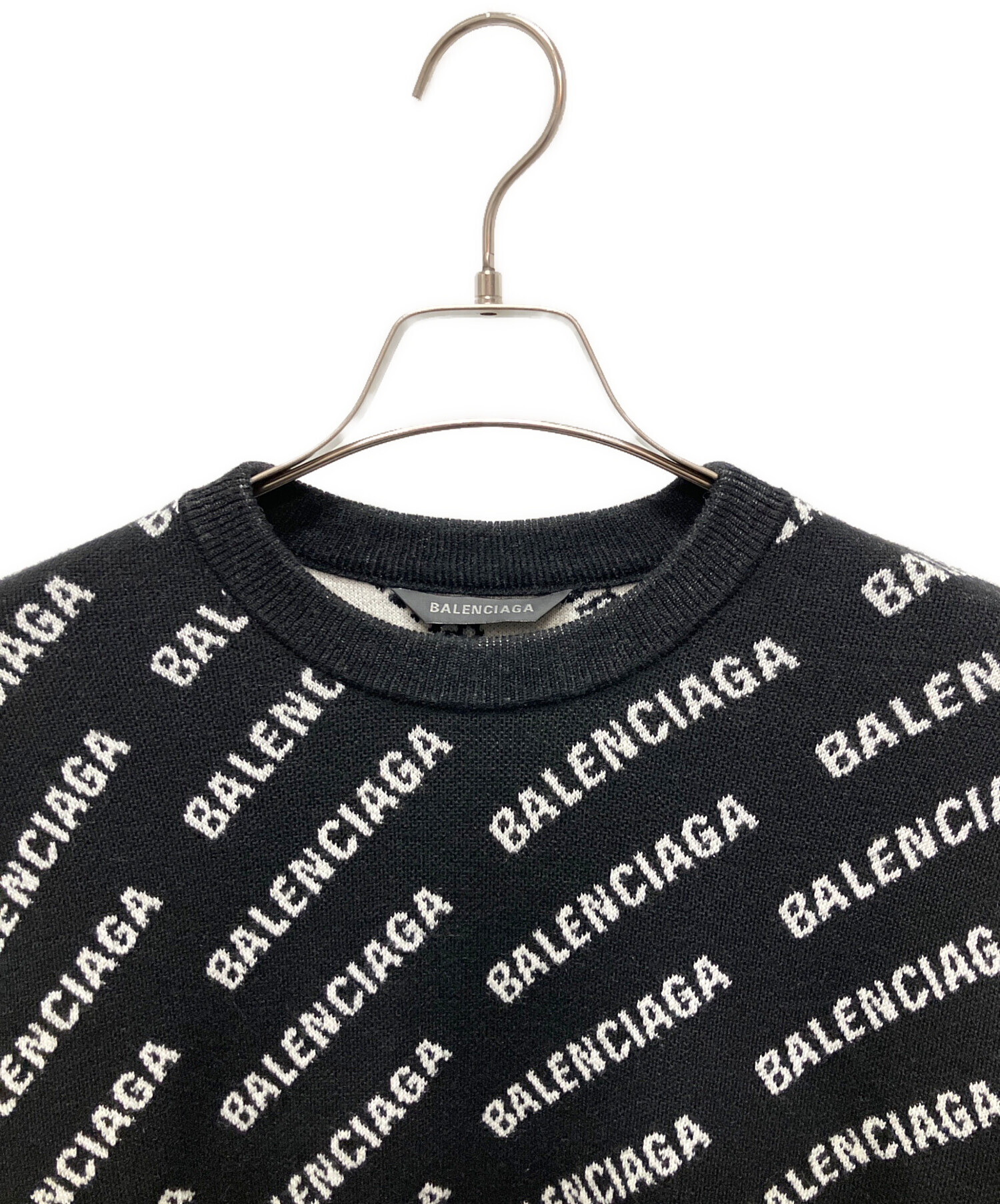 | スタッフコメント | BALENCIAGAのロゴが全体にあしらわれたオールオーバーロゴニットです。黒地に白のロゴがアクセントとなっています。厚すぎず、薄すぎずな素材感で重ね着にも適しています。また、ウールが使用されている為シワがつきにくく、保温性が高いのも特徴です。 |