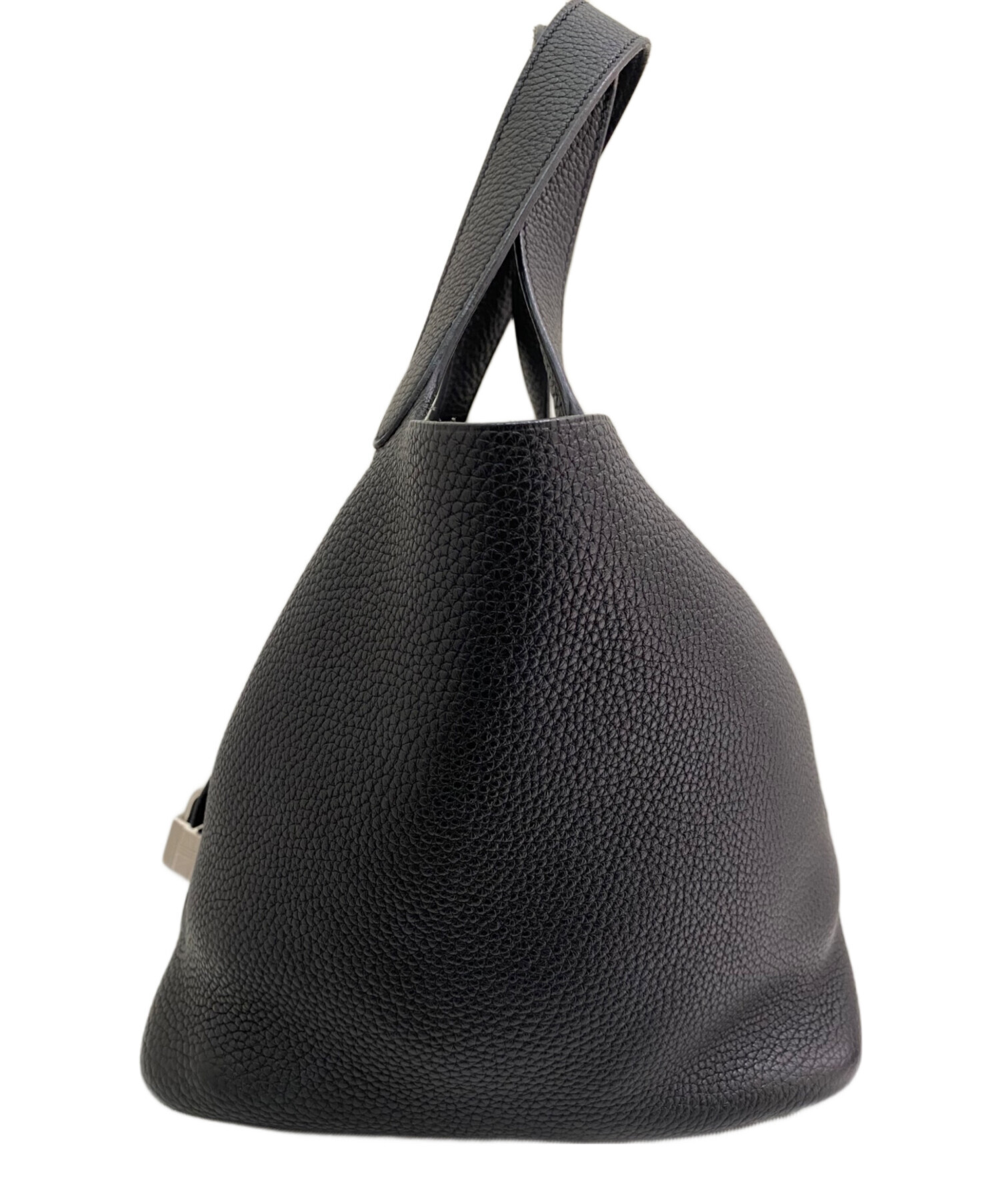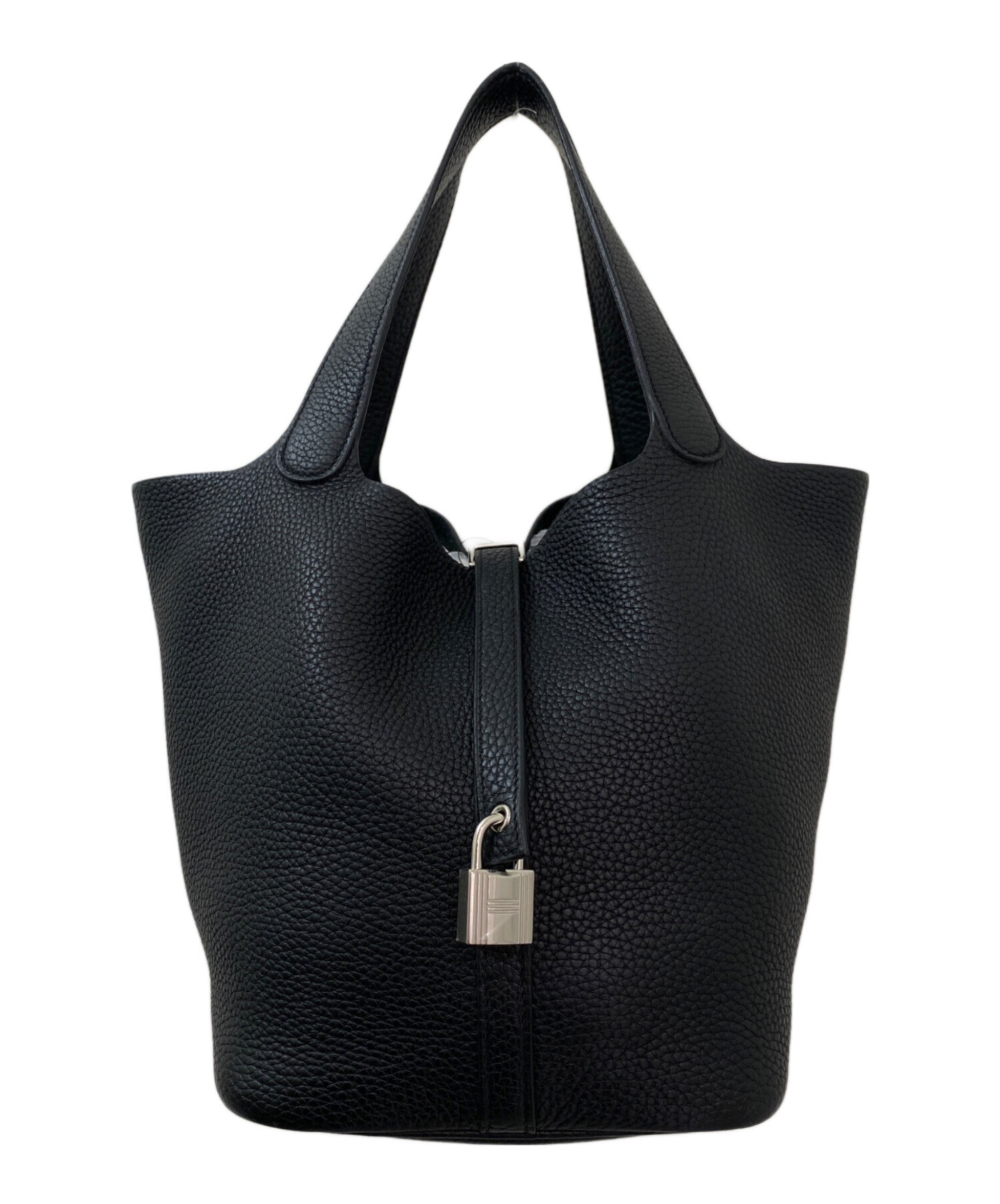 | スタッフコメント | HERMESの王道アイテムピコタンロックMMでござます。MMはPMサイズよりも大きく、より収納力に優れています。マチもしっかりとあり、入口も大きので物の出し入れもしやすいです。ブラックカラーは上品かつ、どんなコーディネートにも取り入れやすいです。 |