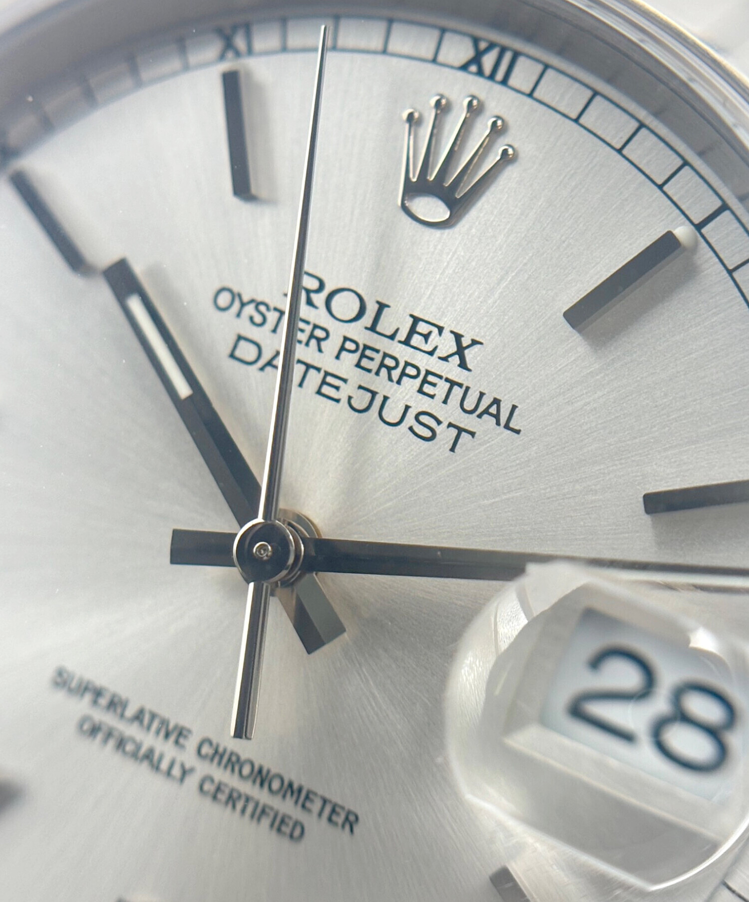 スタッフコメント 落ち着いた佇まいと実用性を兼ね備えた、ロレックスのデイトジャスト36でございます。程よいケースサイズにジュビリーブレスが上品な輝きを添え、腕元に柔らかな高級感を演出する一本でございます。日常使いからきれいめな装いまで幅広く馴染む魅力的なモデルでございます。シルバー文字盤が光を柔らかく反射し、清潔感と上品さを兼ね備えた落ち着いた印象を演出いたします。