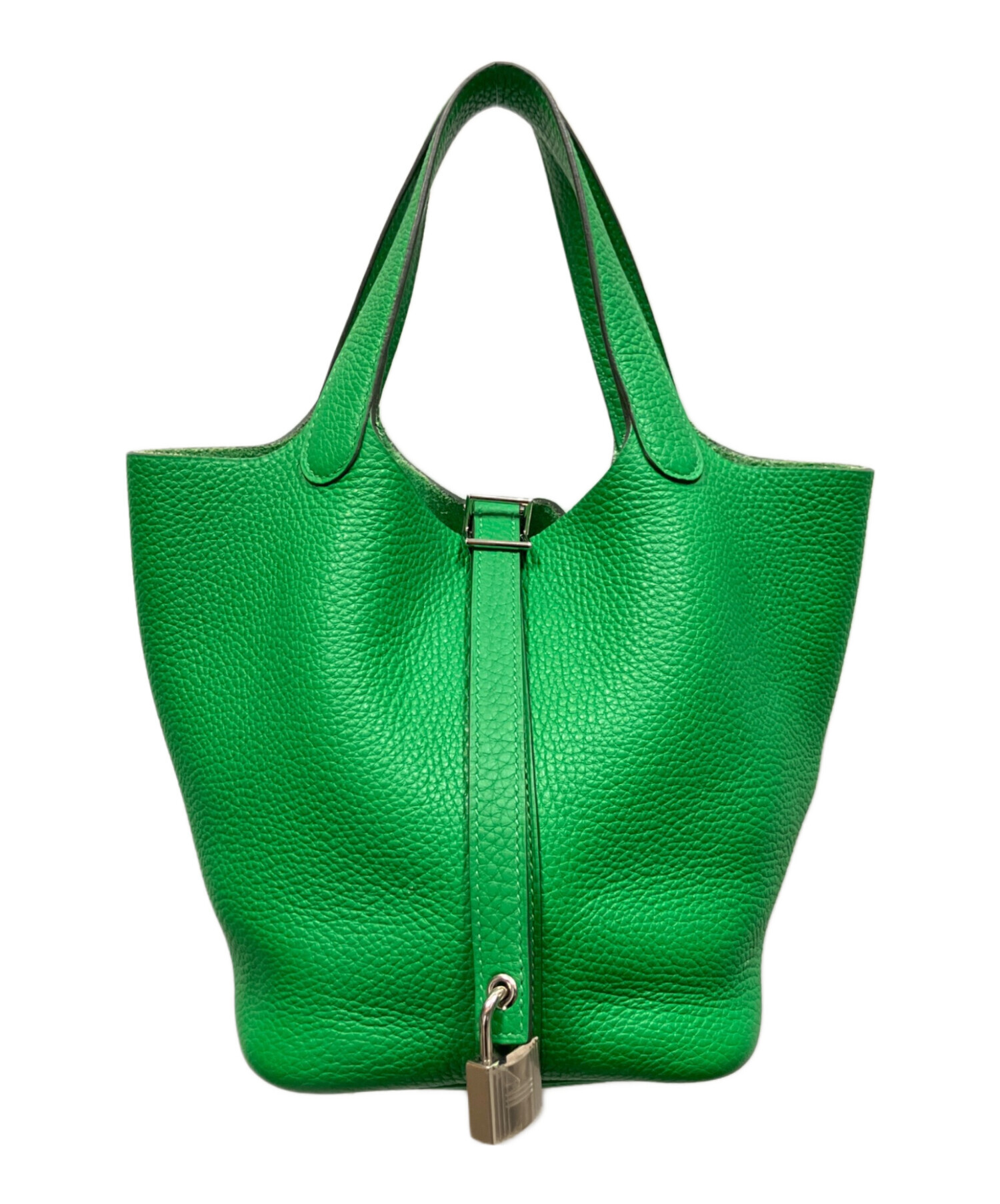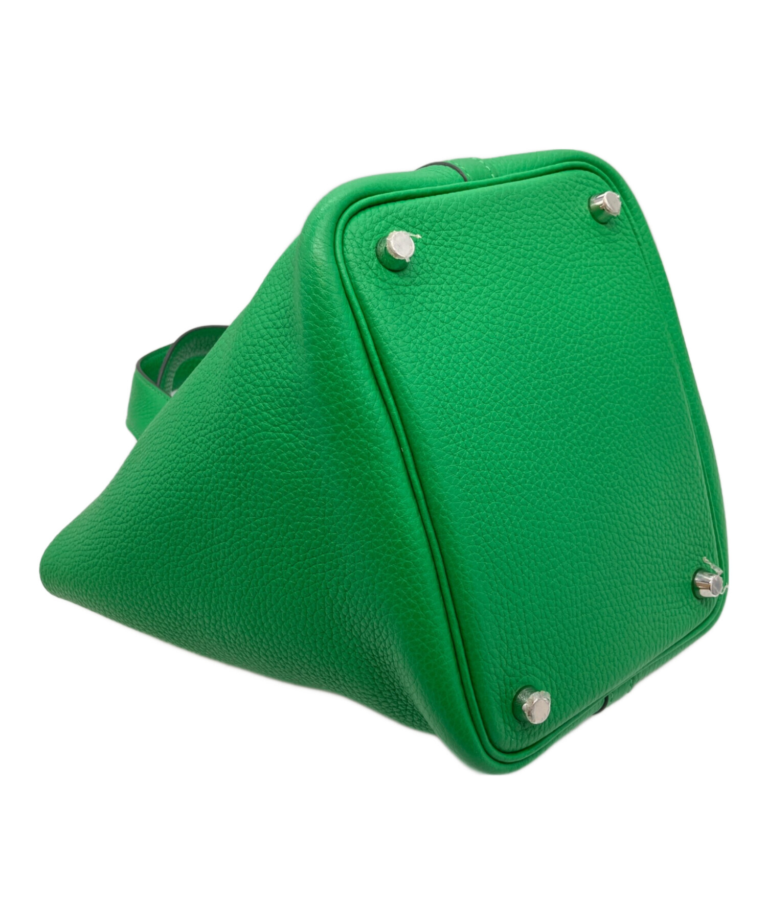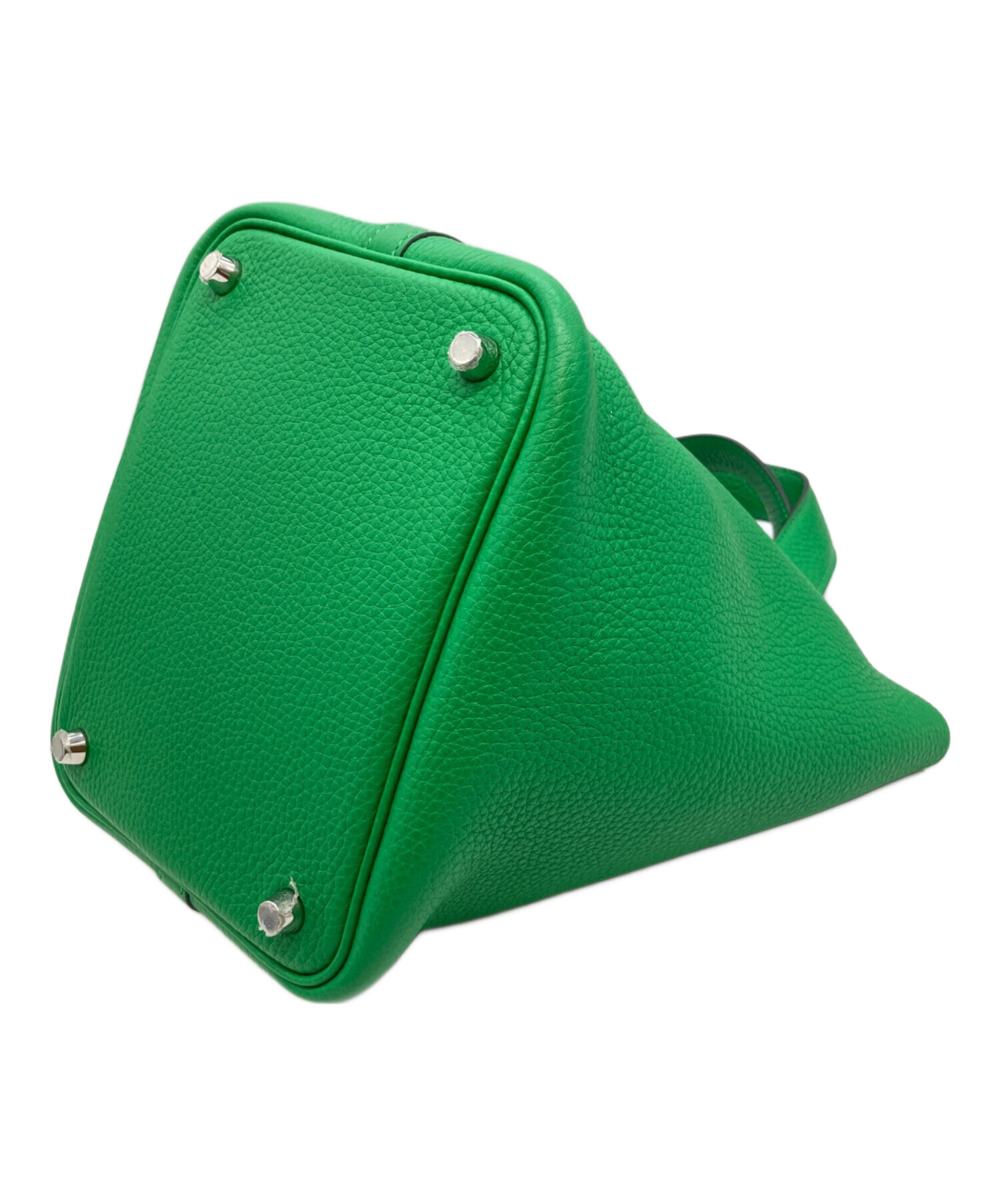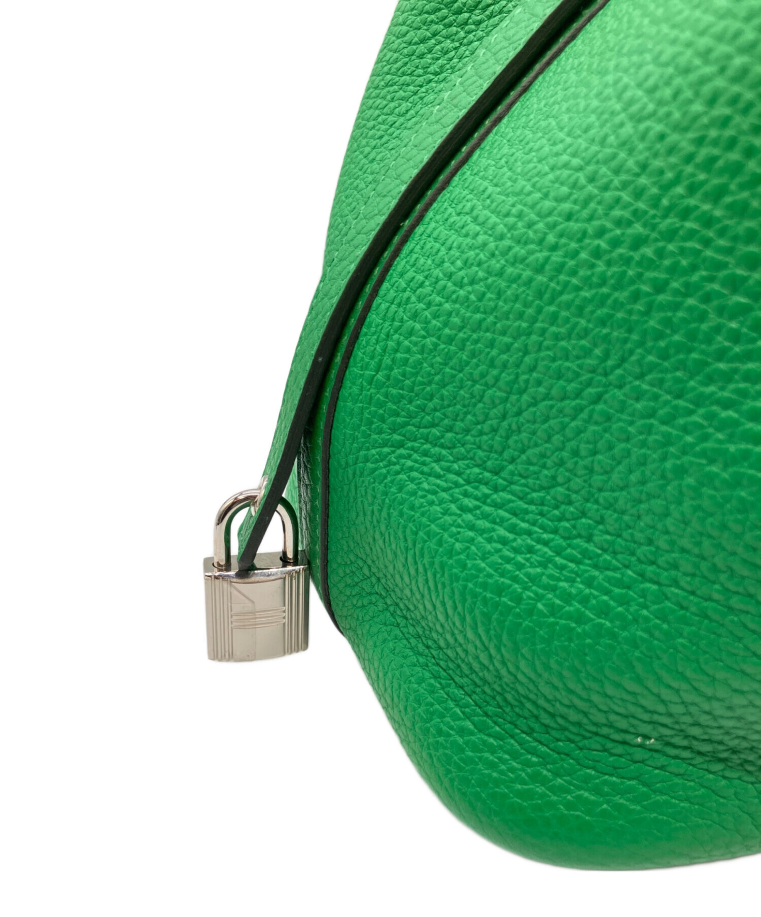 | スタッフコメント | ブランドアイコニックのハンドバッグであるピコタンロックでございます。サイズはPMとなっており、コンパクトながらにも財布やコスメ等の必需品を難なく収納可能な点が魅力的です。また、素材にはトリヨンクレマンスを使用している為、その特有のシボ感によりダメージが目立ちにくく耐久性に優れております。存在感のあるバンブーで様々なシーンで活躍するオススメのアイテムです。 |