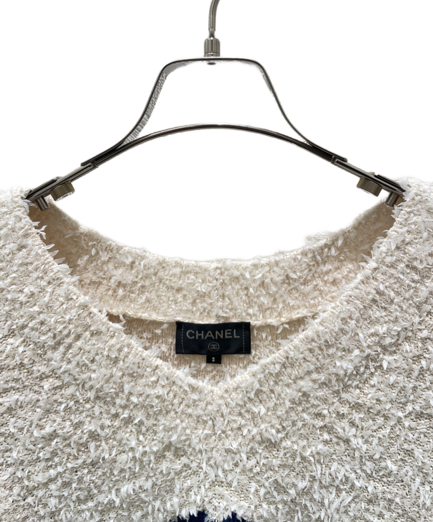 | スタッフコメント | CHANELのココマークニットでございます。CHANELを代表するツイード素材で上品な雰囲気を与えます。スポーティーなデザインとワイドシルエットが抜け感を演出しているのも魅力です。特別な日から、日常に至るまで様々な場面で活躍してくれます。 |