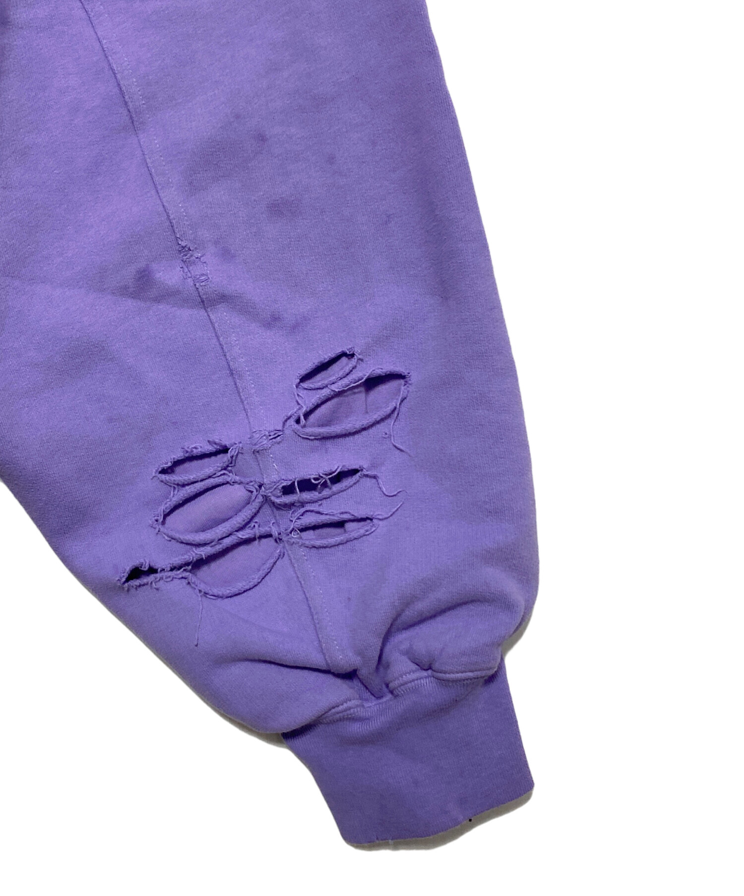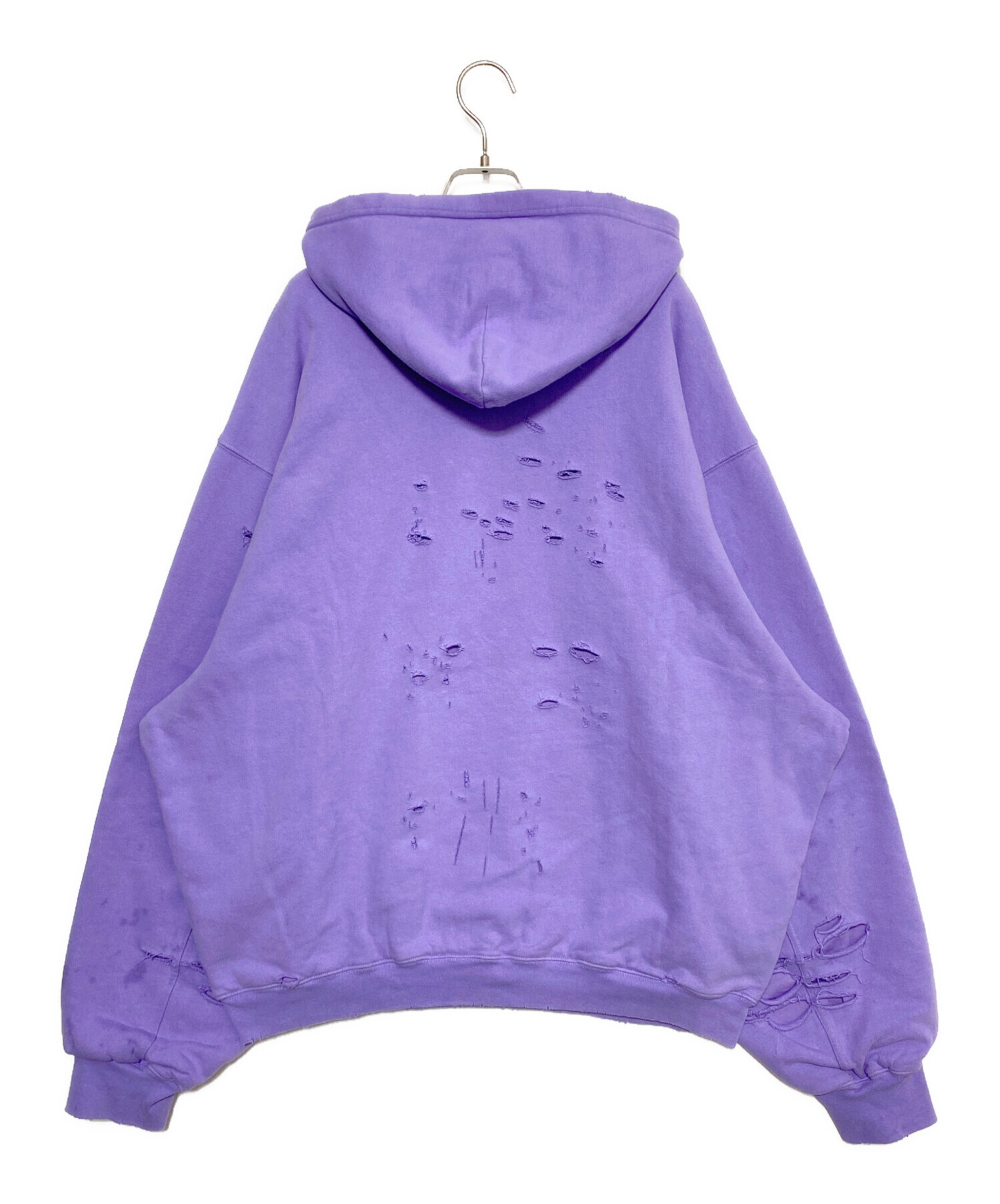 | スタッフコメント | 各所にダメージ加工を施したインパクトのあるプルオーバーパーカーです。フロントにはブランドロゴをあしらっております。ダメージの下にはもう一枚生地を施しており、一枚でも着やすいアイテムです。 |