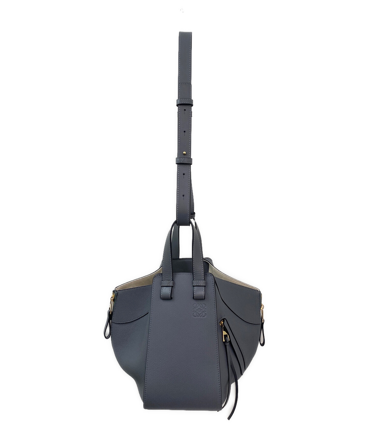スタッフコメント ロエベのハンモックバッグ スモールでございます。ロエベの中で有名で人気なデザインのバッグです。スモールサイズは十分な容量で、パールグレーの上品な色味が洗練された印象に仕上げます。