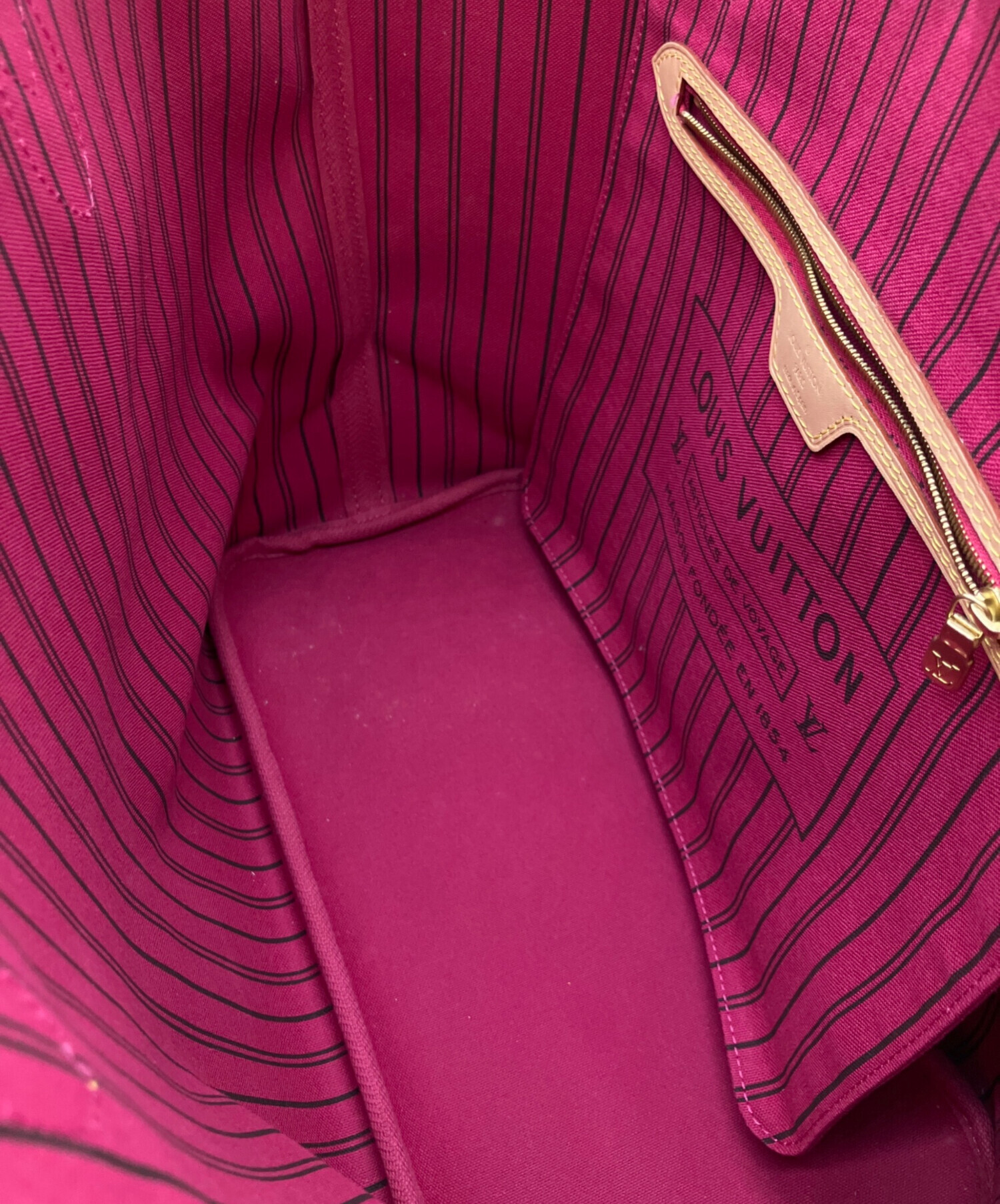 | スタッフコメント | ルイヴィトンの定番商品であるネヴァーフルのMMになります。付属のポーチのジッパー部分とバッグの内側がフューシャピンクで彩られ、リバーシブルとしてもご利用いただけます。内側の側面には、ジップポケットがあり、細かいものも収納いただけます。 |