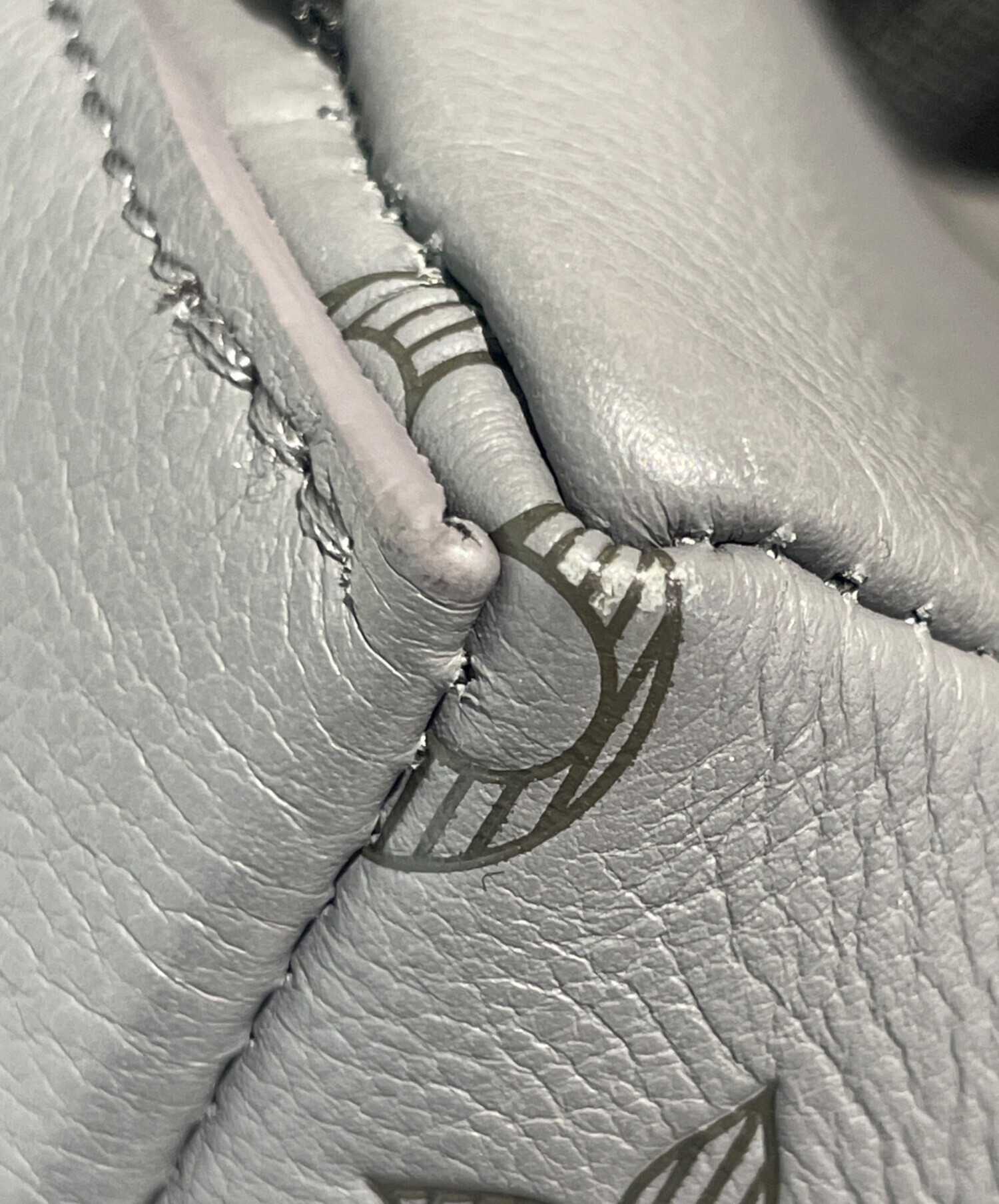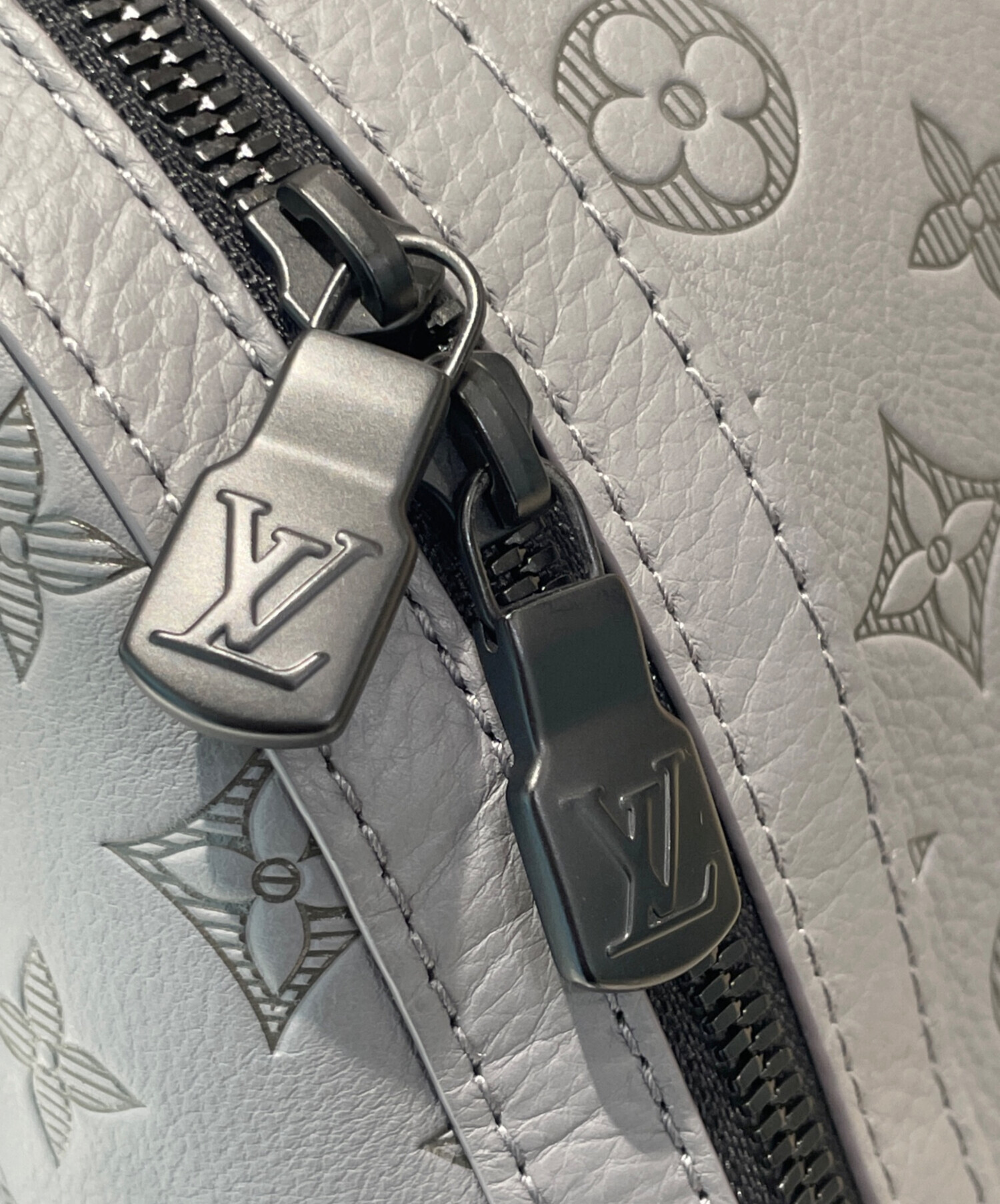 【モノグラムパターンをエンボス加工したカーフレザー】