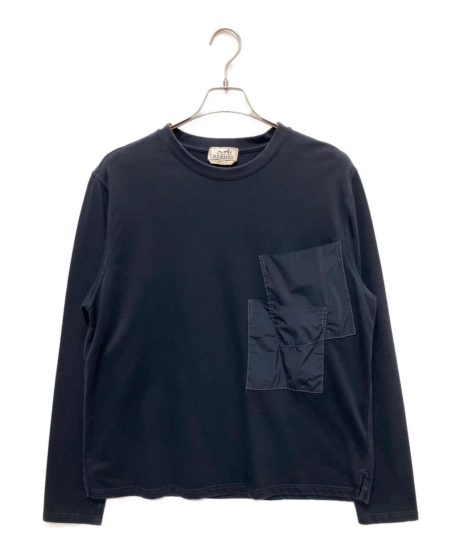 | スタッフコメント | 洗練されたシルエットと上質な素材感が魅力のロングスリーブカットソーでございます。胸元の立体的なポケットデザインがさりげなく個性を演出し、シンプルながらも一線を画す存在感を放つ。快適な着心地とエルメスならではの上品さで、日常に上質な余裕をもたらす一着となっております。 |