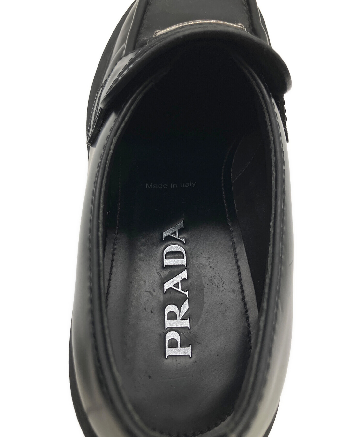 • PRADA(プラダ)PRADA (プラダ) モノリスブラッシュドレザーローファー ブラック サイズ:7〜8の古着・服飾アイテム インソール若干の汚れ有
