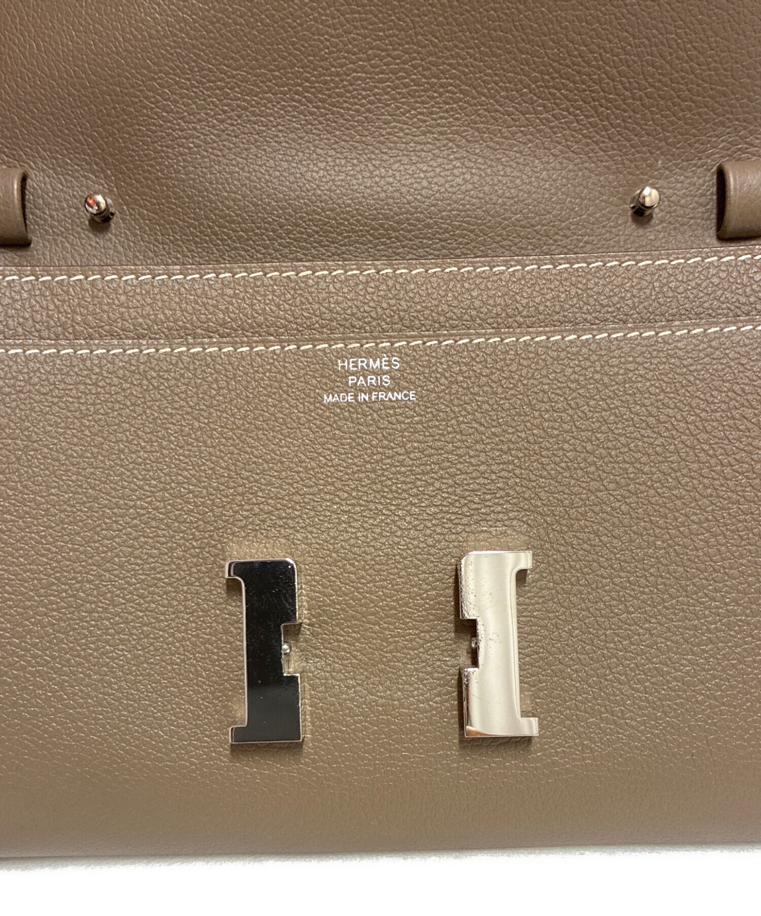 | スタッフコメント | フロントのシルバーのH金具が印象的なHERMESのショルダーウォレットであるコンスタンストゥーゴーでございます。お財布とポシェットの2つの機能を兼ね備えたアイテムとなっています。カジュアルからフォーマルまで幅広いシーンで持てるエトゥープカラーは永くご愛用いただけるアイテムです。 |