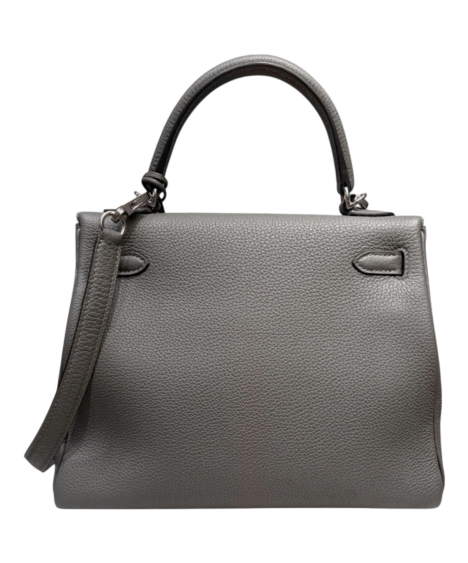 | スタッフコメント | 上品さと実用性を兼ね備えたHERMEの「ケリー25」でございます。素材には傷が目立ちにくく型崩れしにくいトゴレザーを使用しており、日常使いにも適した扱いやすさも魅力です。落ち着いたグリメイヤーカラーにシルバー金具を組み合わせることで、洗練された都会的な雰囲気を演出。フォーマルからカジュアルまで幅広いシーンで活躍する、長くご愛用いただけるアイテムです。 |