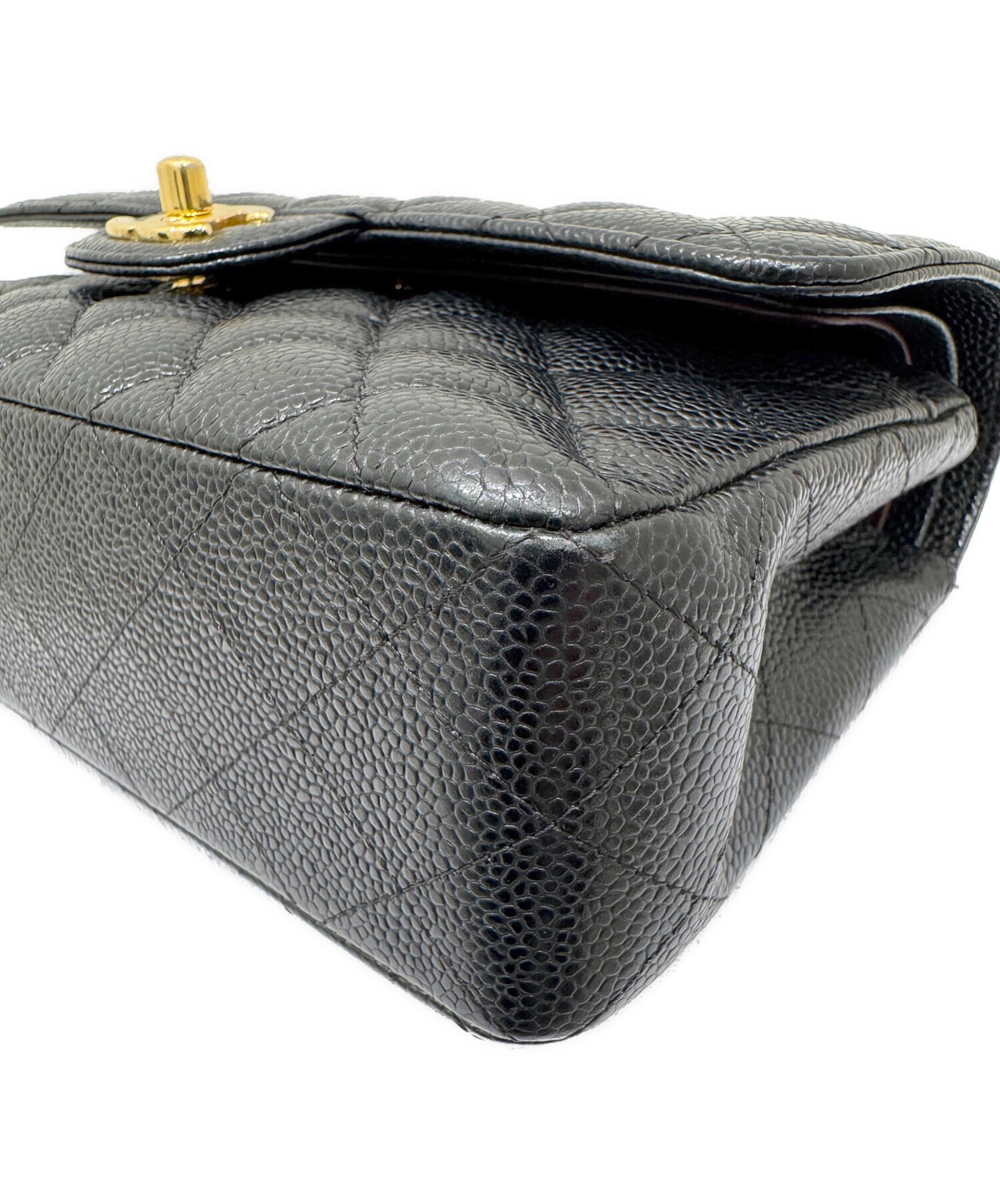 | スタッフコメント | 高級感のあるブラック×ゴールド金具が華やかなシャネルのマトラッセ23でございます。素材はシャネルを象徴するキャビアスキンを使用しており、固めの質感で傷がつきにくく、細かな凹凸が光を反射し華やかな印象です。ドレスシーンやカジュアルシーンなどの様々な場面で活躍します。 |