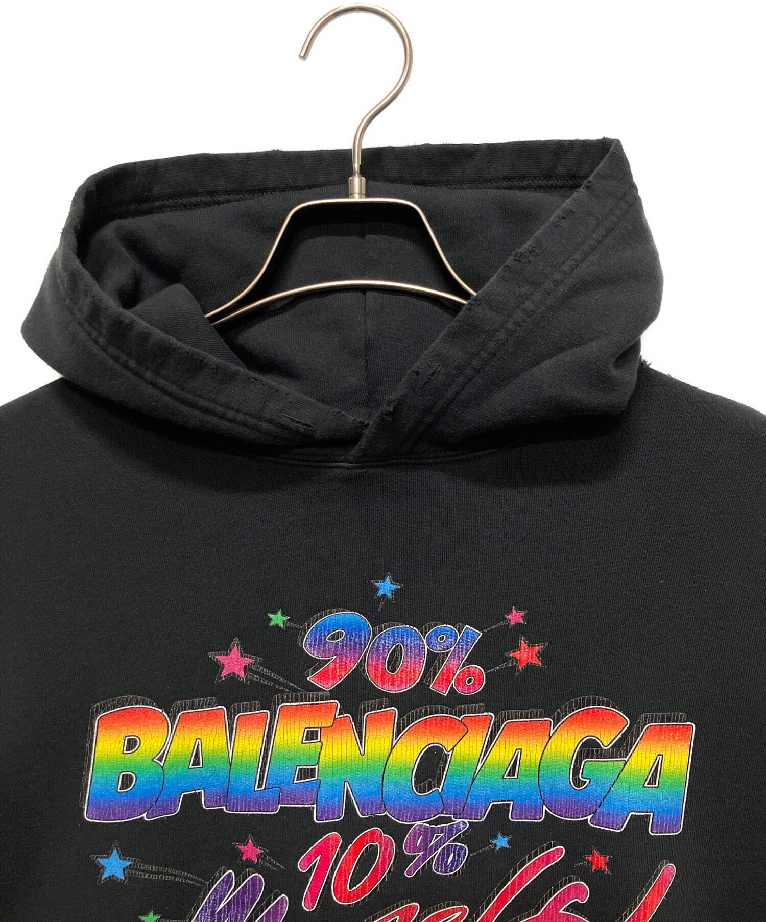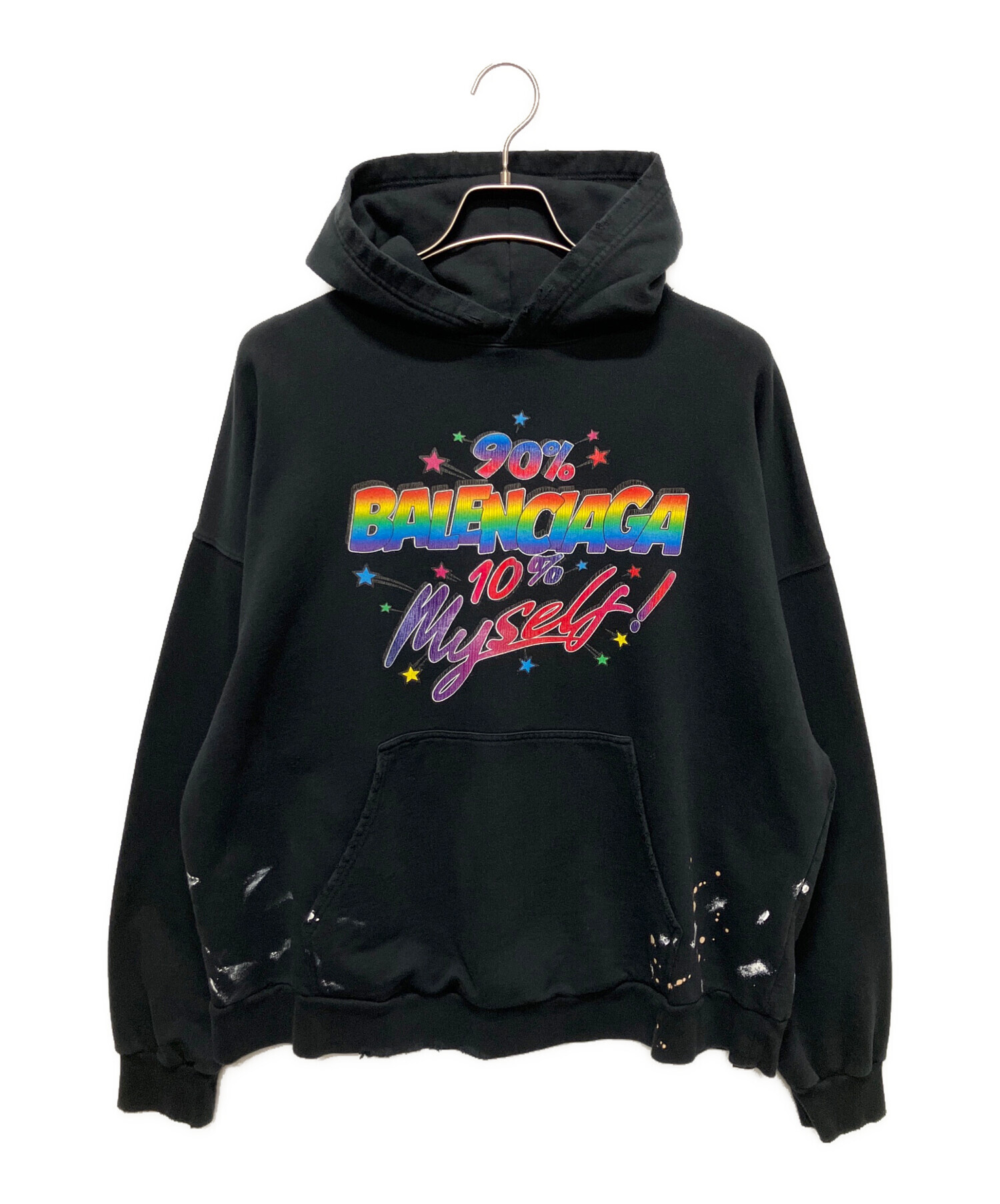 22AW ペイント ダメージ 加工 グラフィック ロゴ プルオーバー スウェット パーカー/BALENCIAGAロゴ フロントレインボー マルチカラーペンキ加工 パーカー