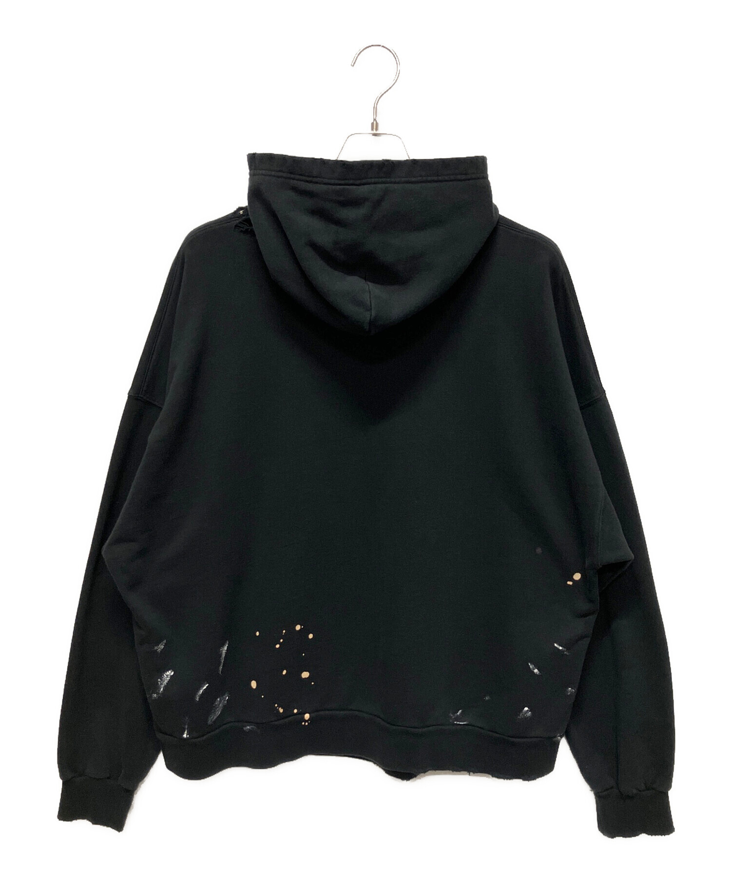 | スタッフコメント | フロントにロゴプリントをあしらったプルオーバーフーディーです。各所のペイント加工もアクセントとなっております。ドロップショルダーデザインのため、オーバーシルエットでご着用いただけるのも魅力的です。 |