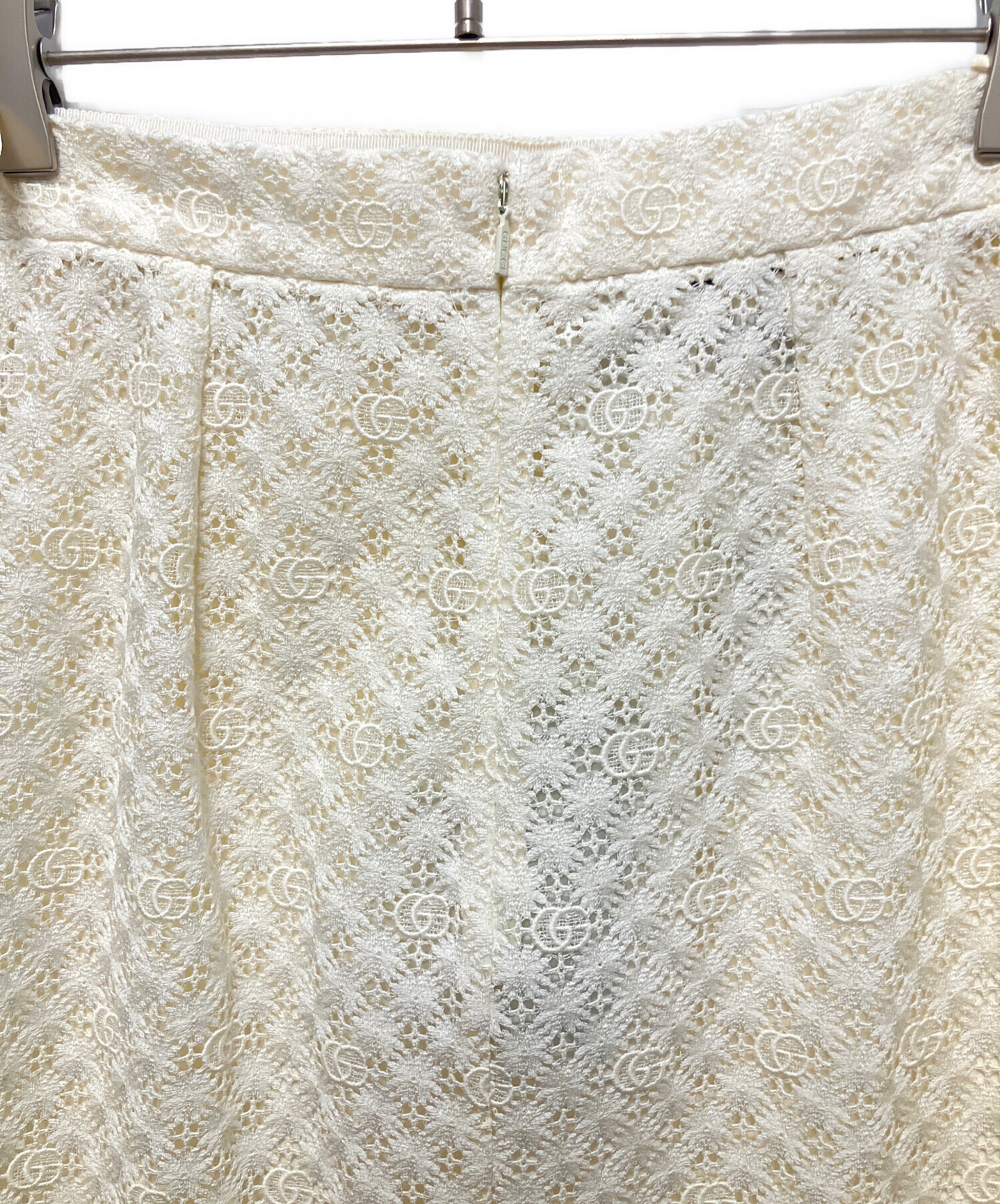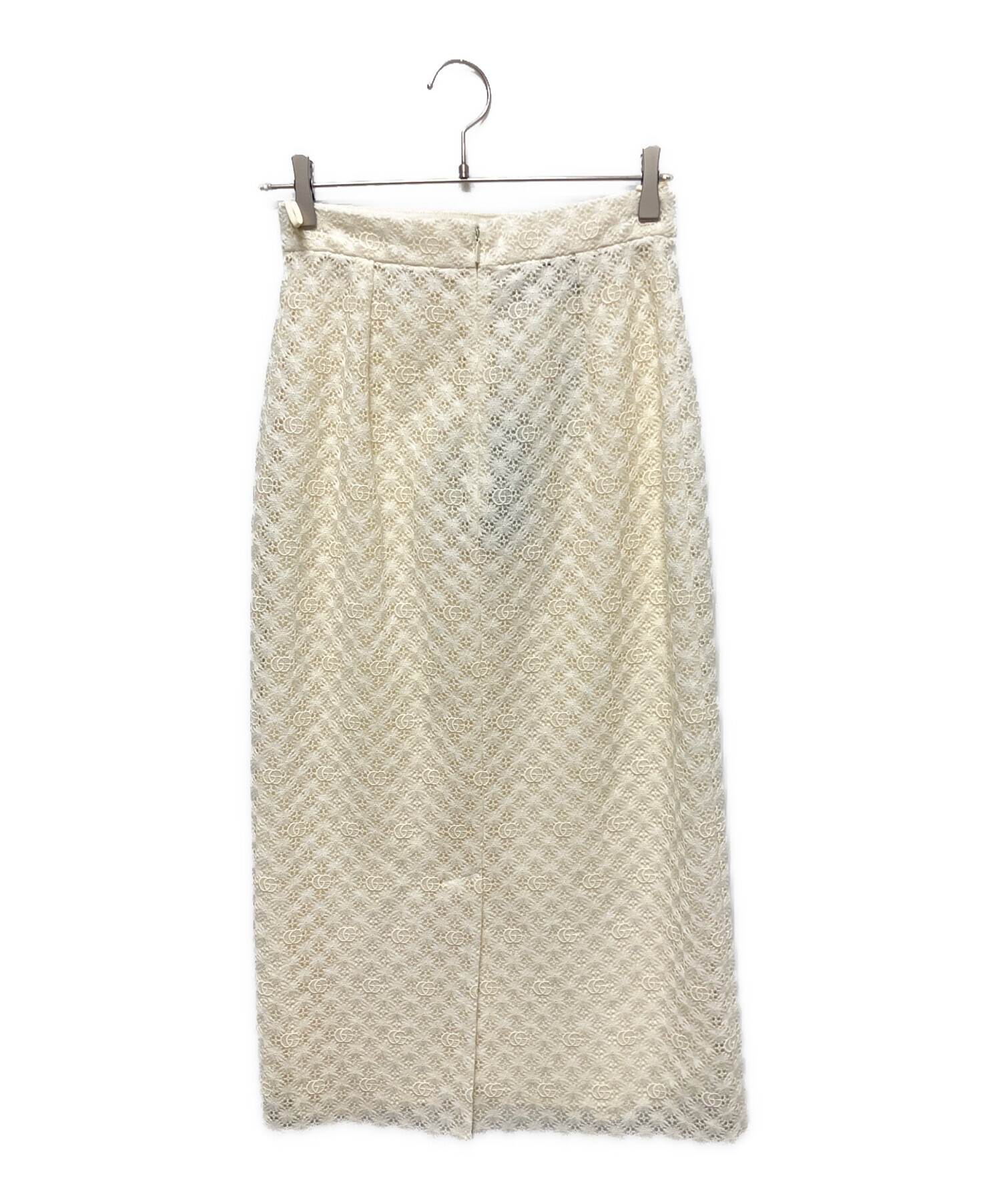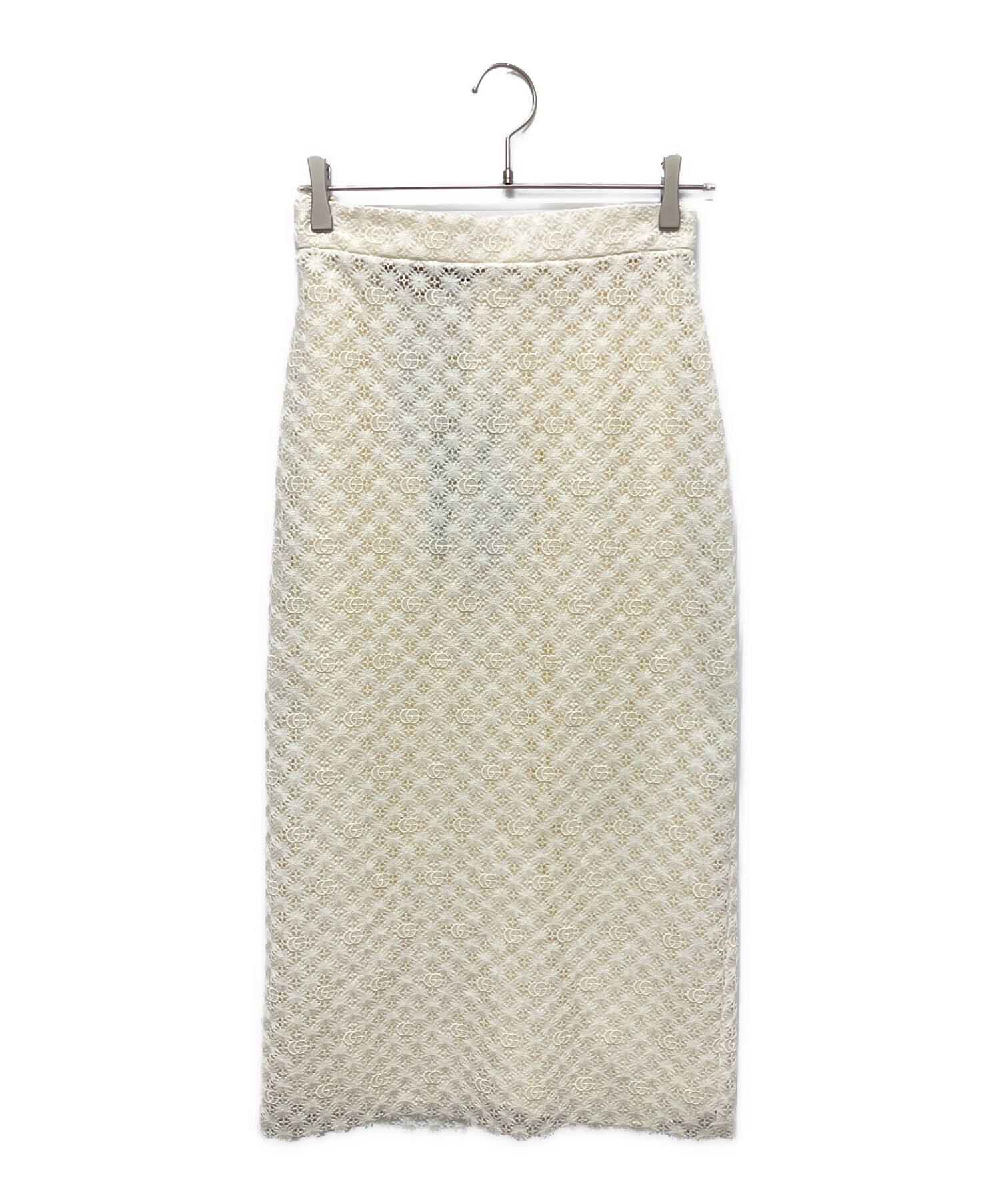 スタッフコメント GUCCIのシグニチャーであるダブルGを全体にあしらった総レースのロングスカートでございます。取り外し可能なインナー付きなので、ペチコートを合わせずに着ていただけます。タイトなシルエットのロングスカートはコーディネートに女性らしさを演出します。