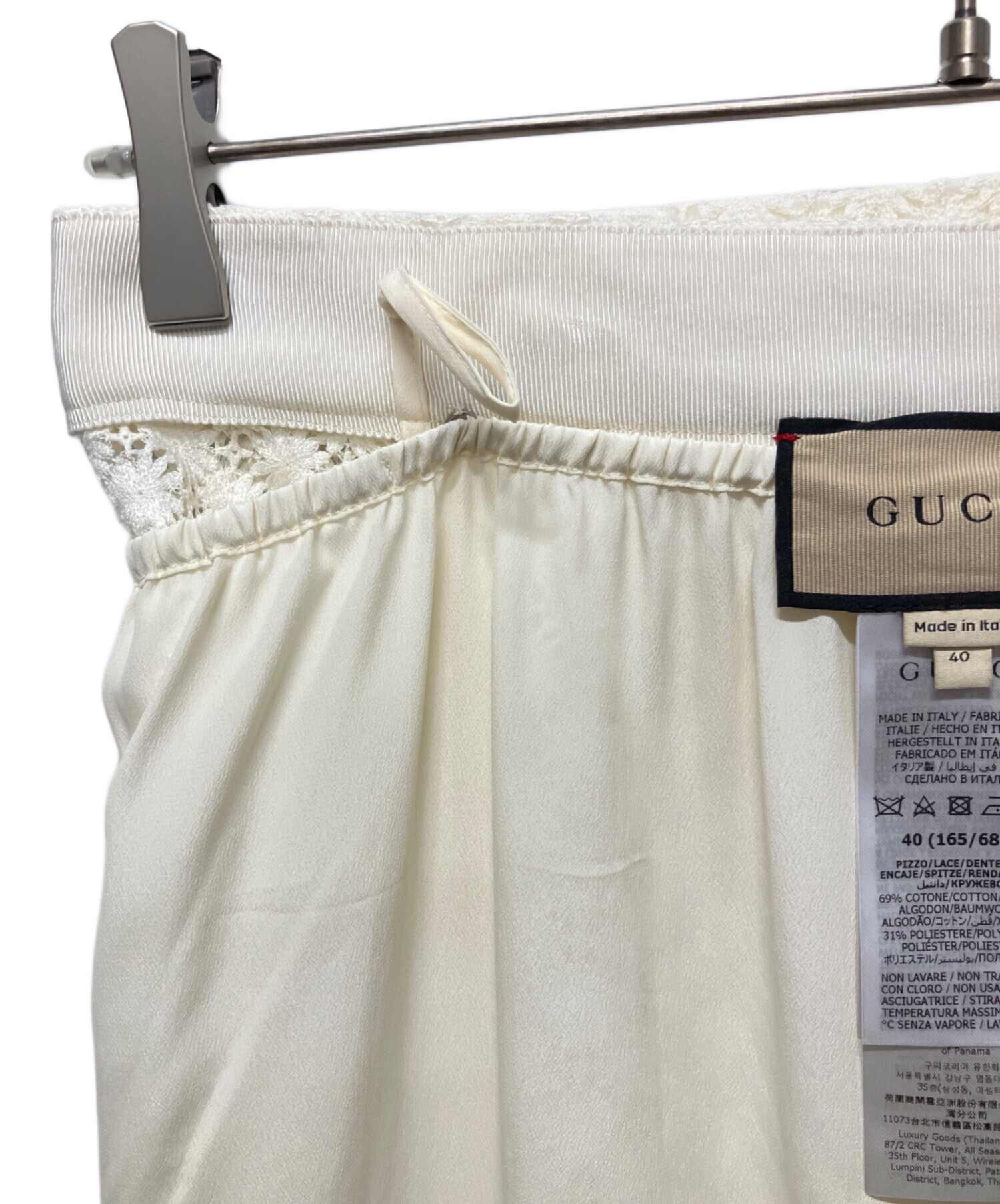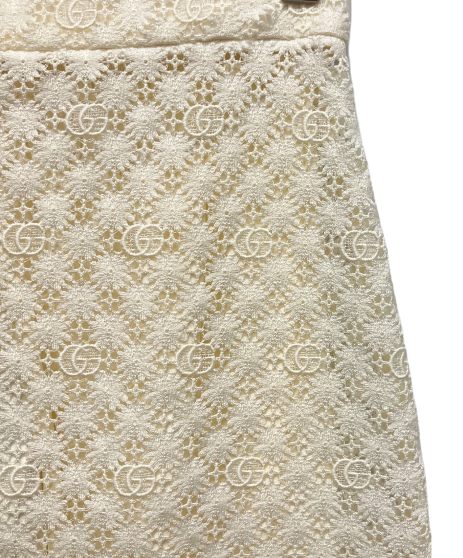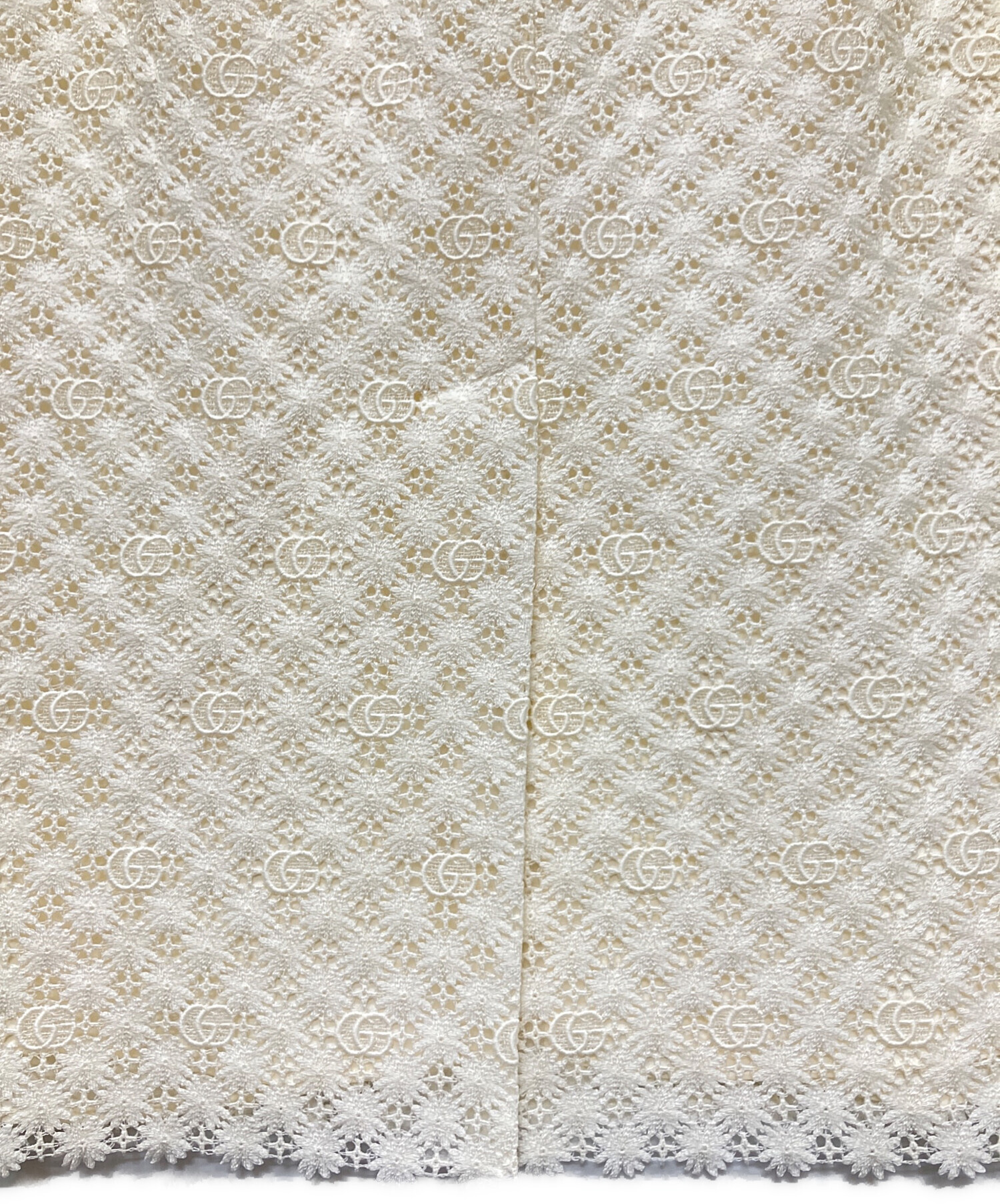 スタッフコメント GUCCIのシグニチャーであるダブルGを全体にあしらった総レースのロングスカートでございます。取り外し可能なインナー付きなので、ペチコートを合わせずに着ていただけます。タイトなシルエットのロングスカートはコーディネートに女性らしさを演出します。