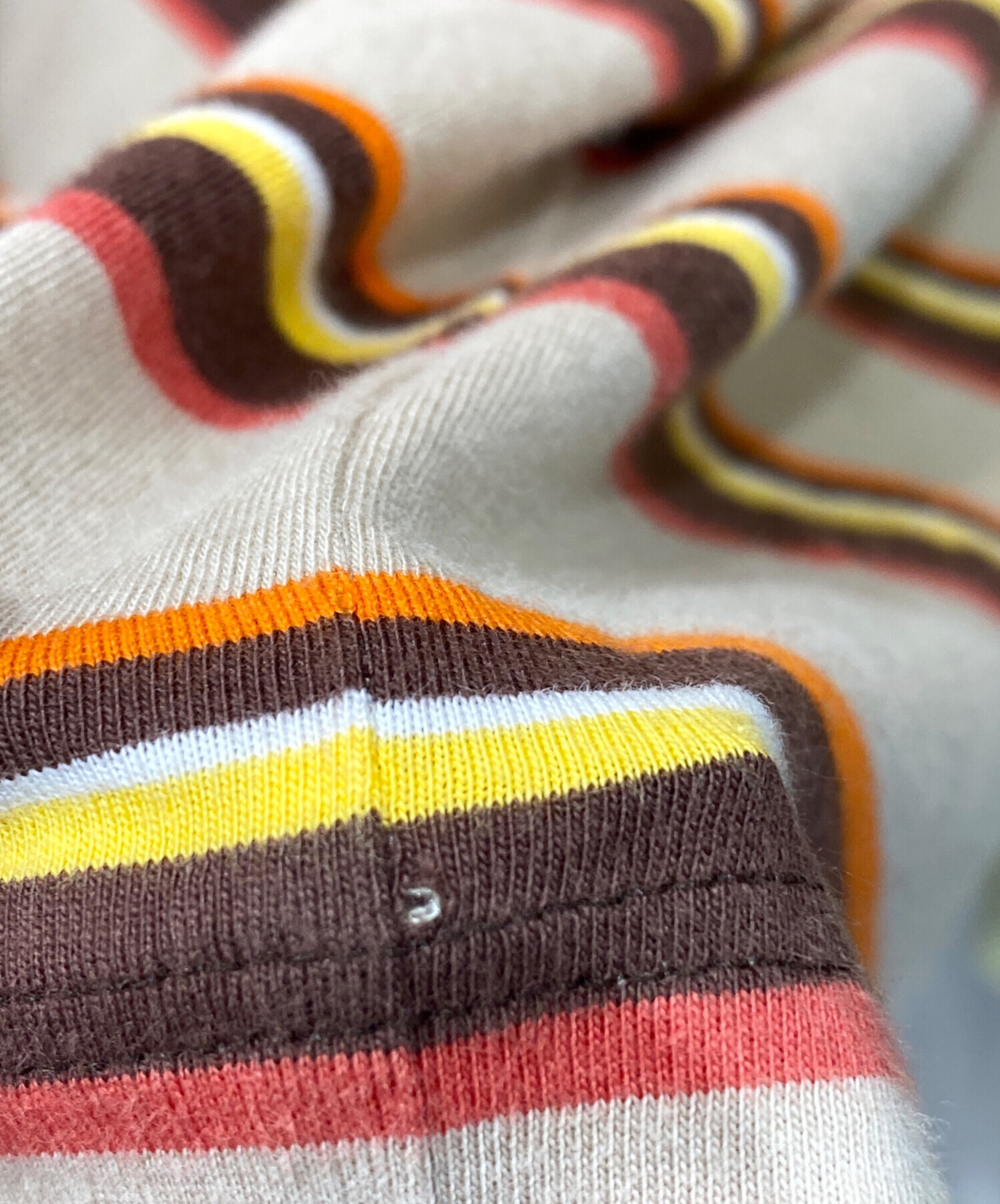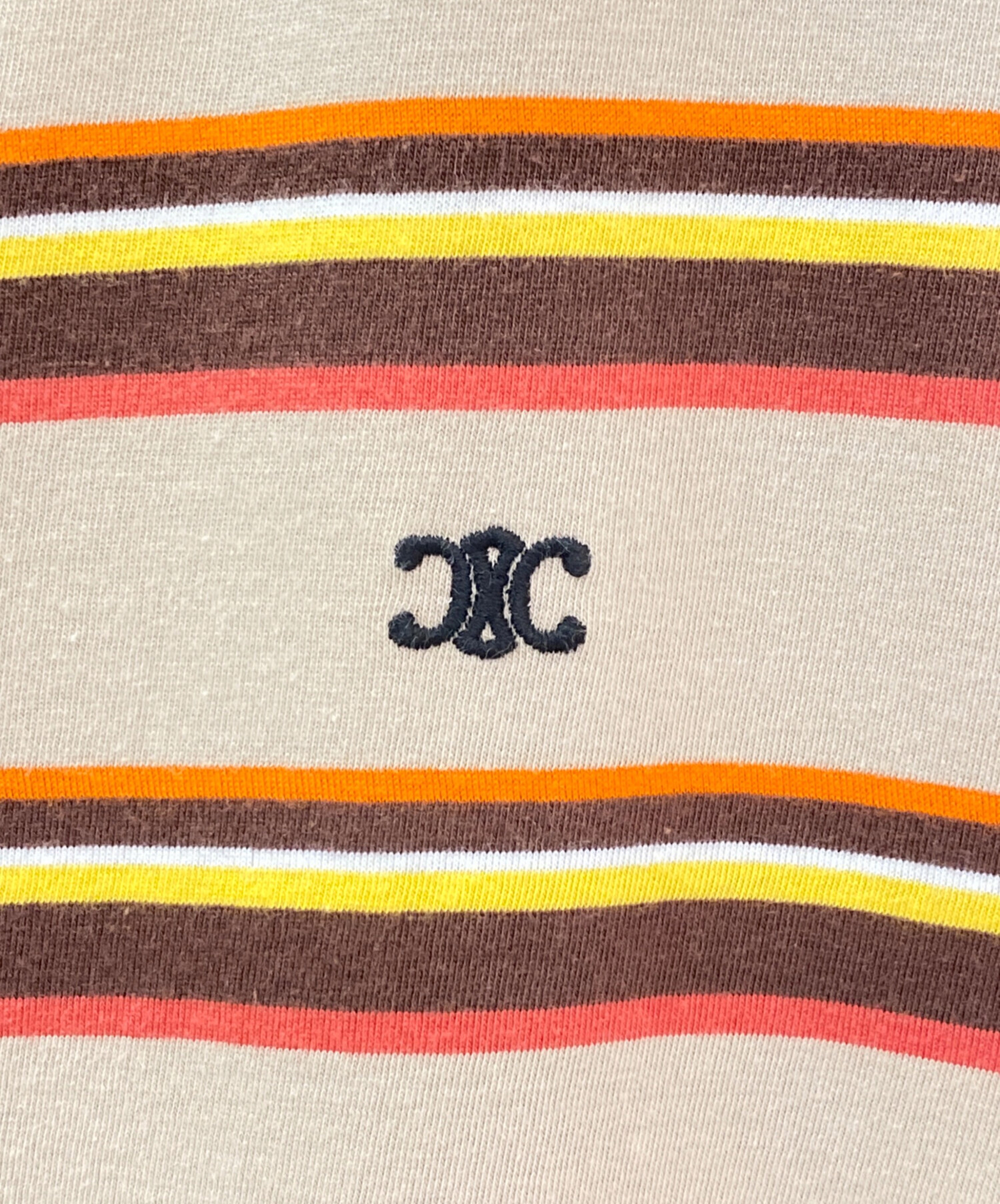• CELINE(セリーヌ)CELINE (セリーヌ) トリオンフボーダーTシャツ ブラウン×オレンジ サイズ:XLの古着・服飾アイテム サイド縫い目付近に小穴有